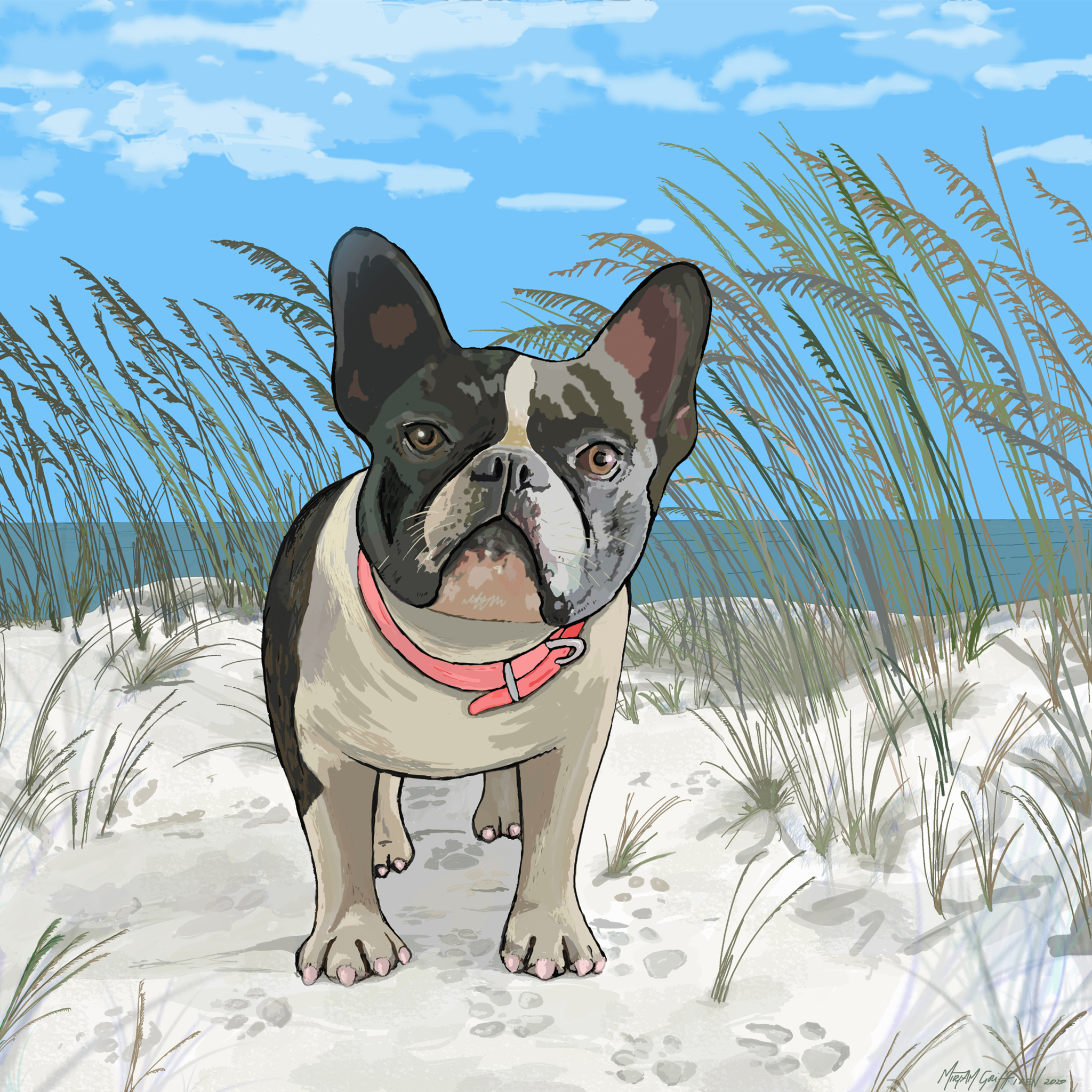 Zee Portret Dieren Art Liefde Kunst Hond Pet Vriend Duinen Huisdier Bulldog Dog Zand Wandelen Maatje Fransebull Dierenkunst Hondenkunst Viervoeter Happydog Vrolijkekunst Kleurrijkekunst Beachart Oceanart