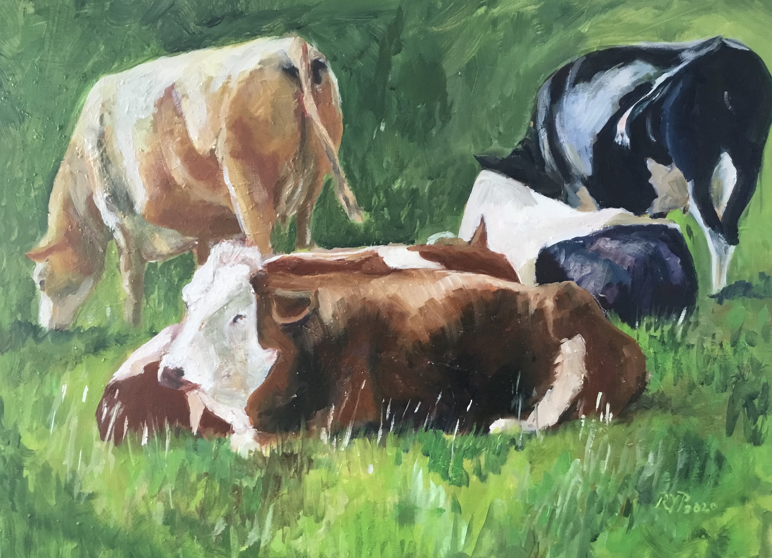 5 koeien in wei. Olie op doek . Winterswijk 2020