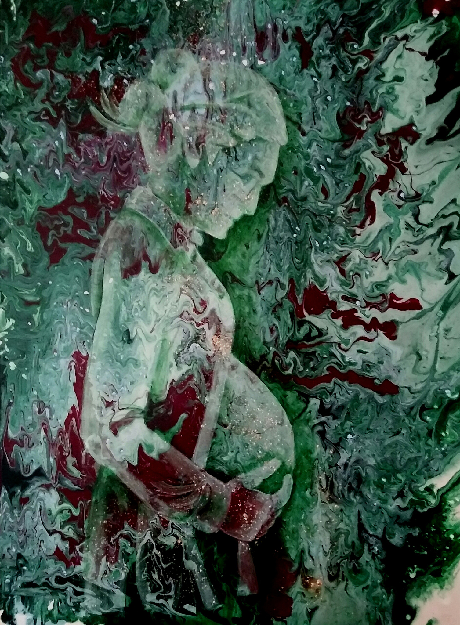 een pouring met daarop een schaduwschilderij
