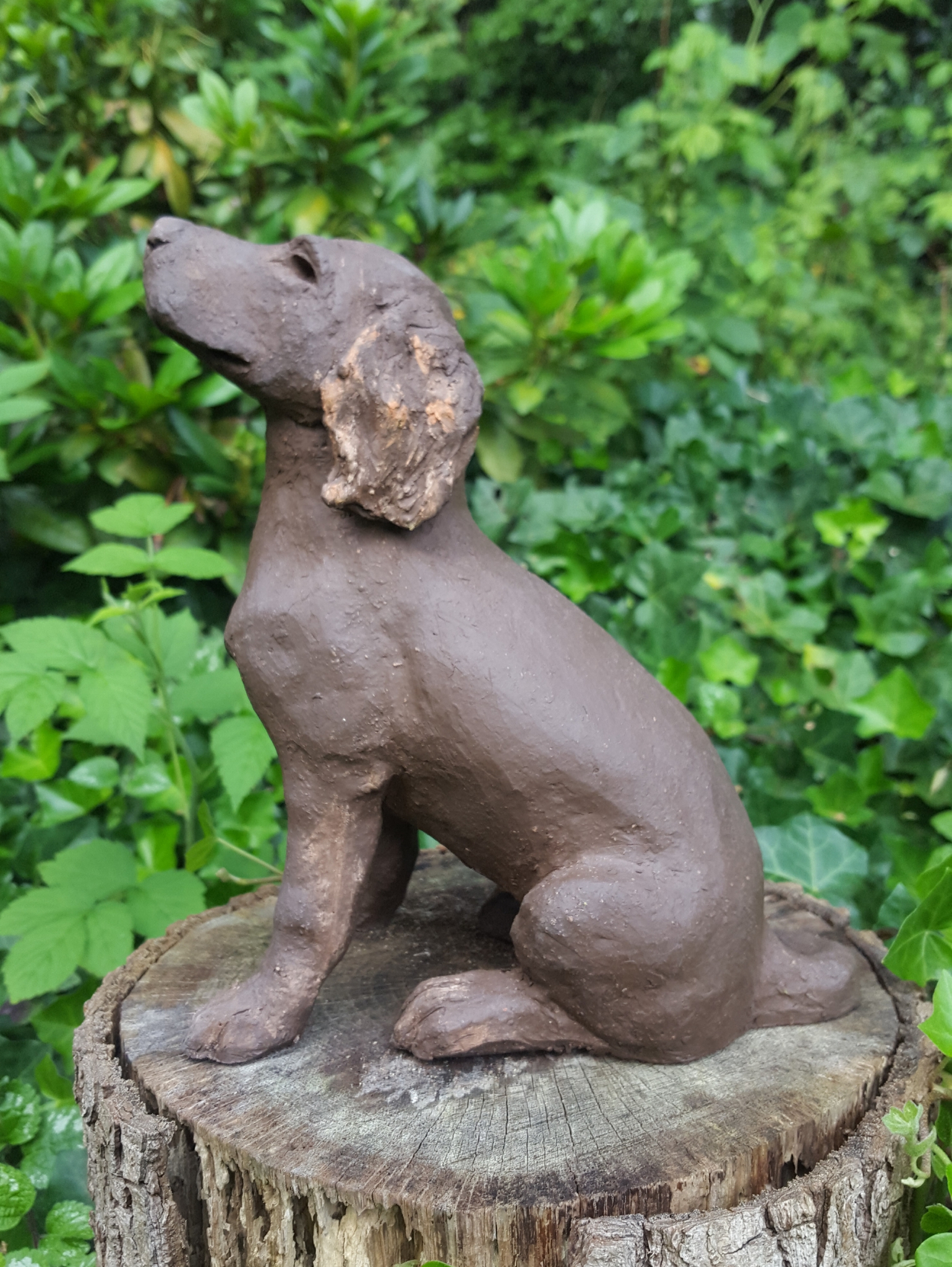 Duitse Staande langhaar in donkere grove chamotteklei met wat terracottakleurige slib.