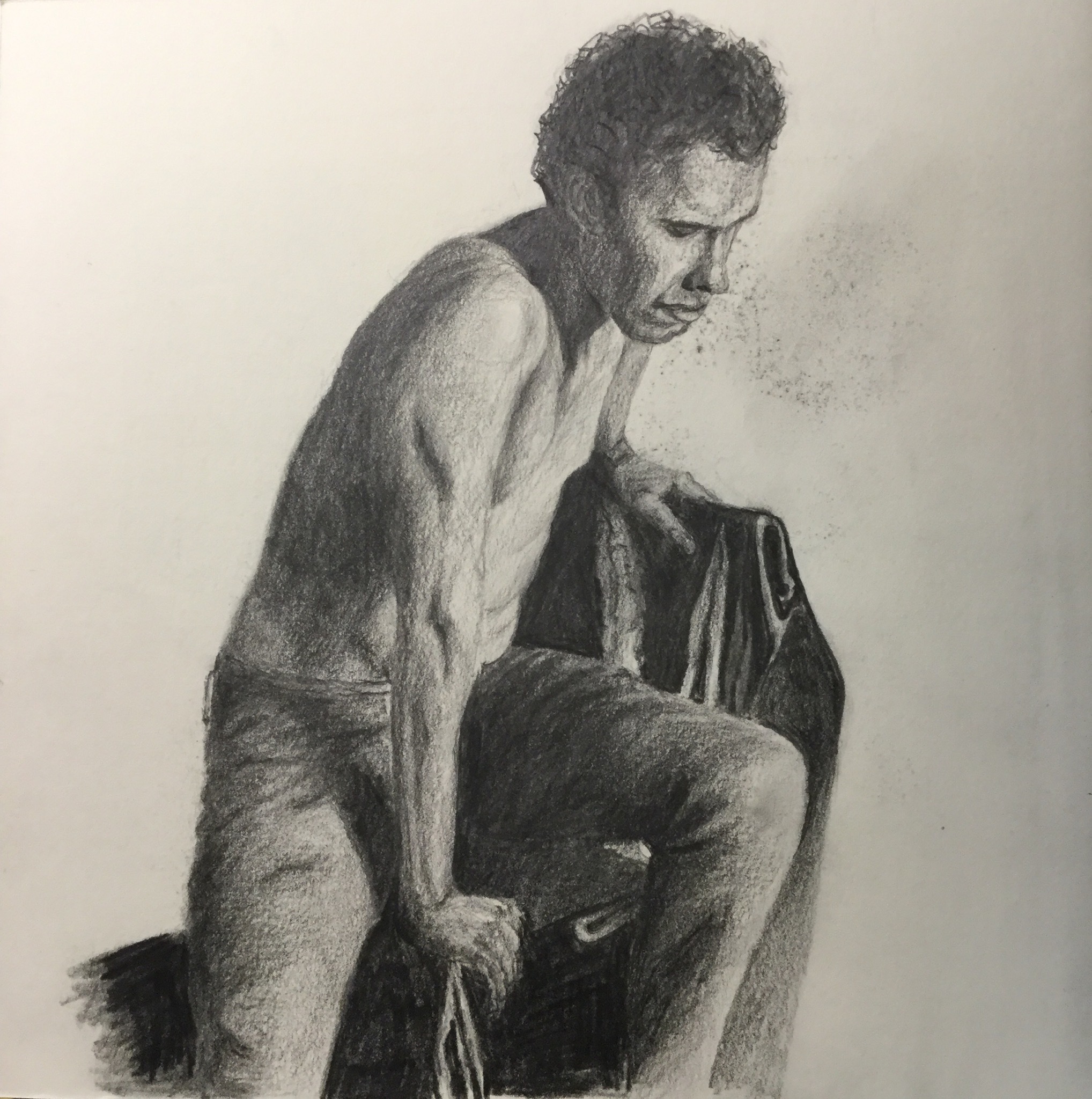 Model Man Stoel Potlood Tekening Zwart Wit Realistisch Figuratief