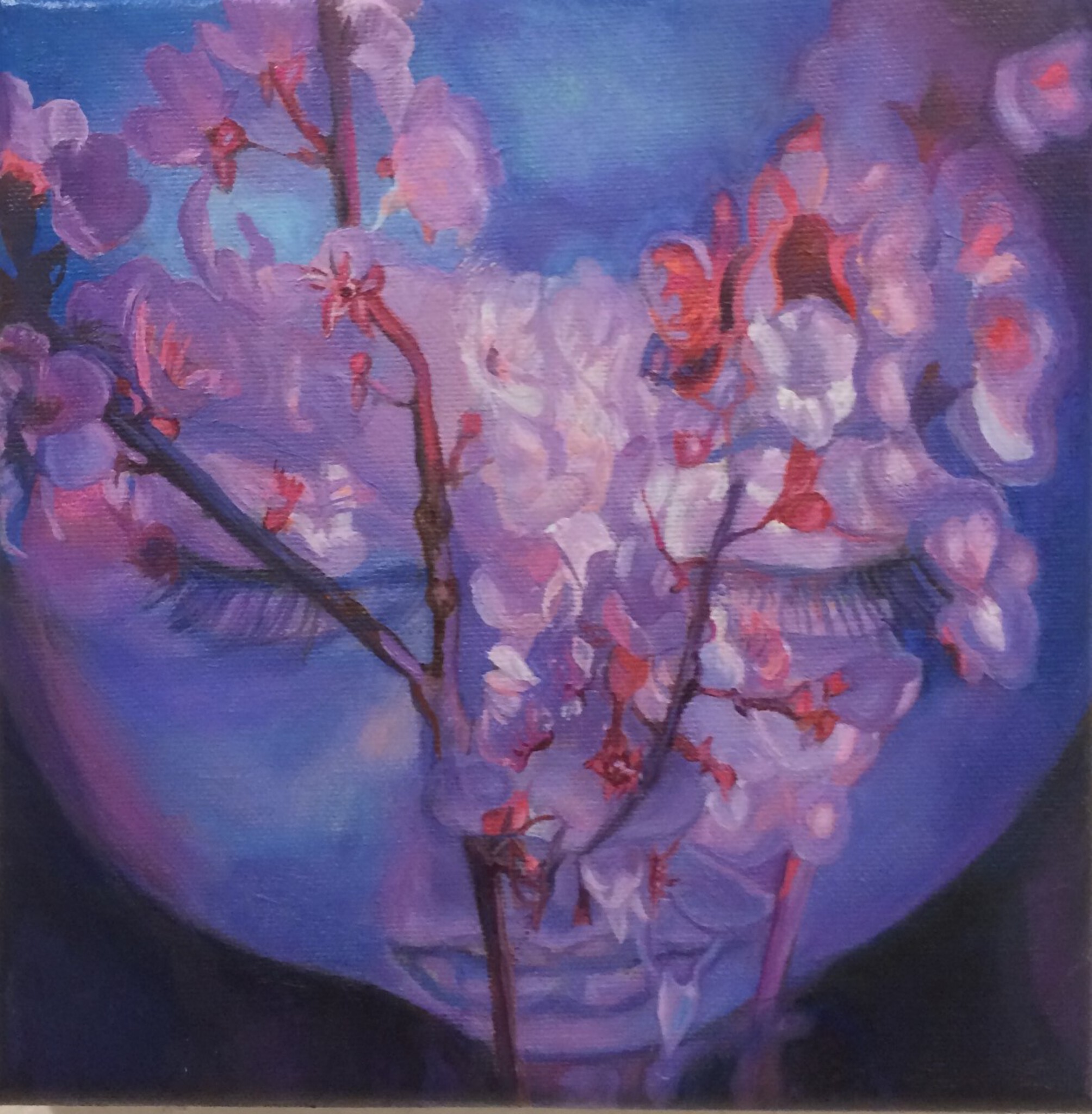 Ma Fleur 5 - 2017 - Baby zoon met bloesem - olieverf op doek 20 x 20 cm