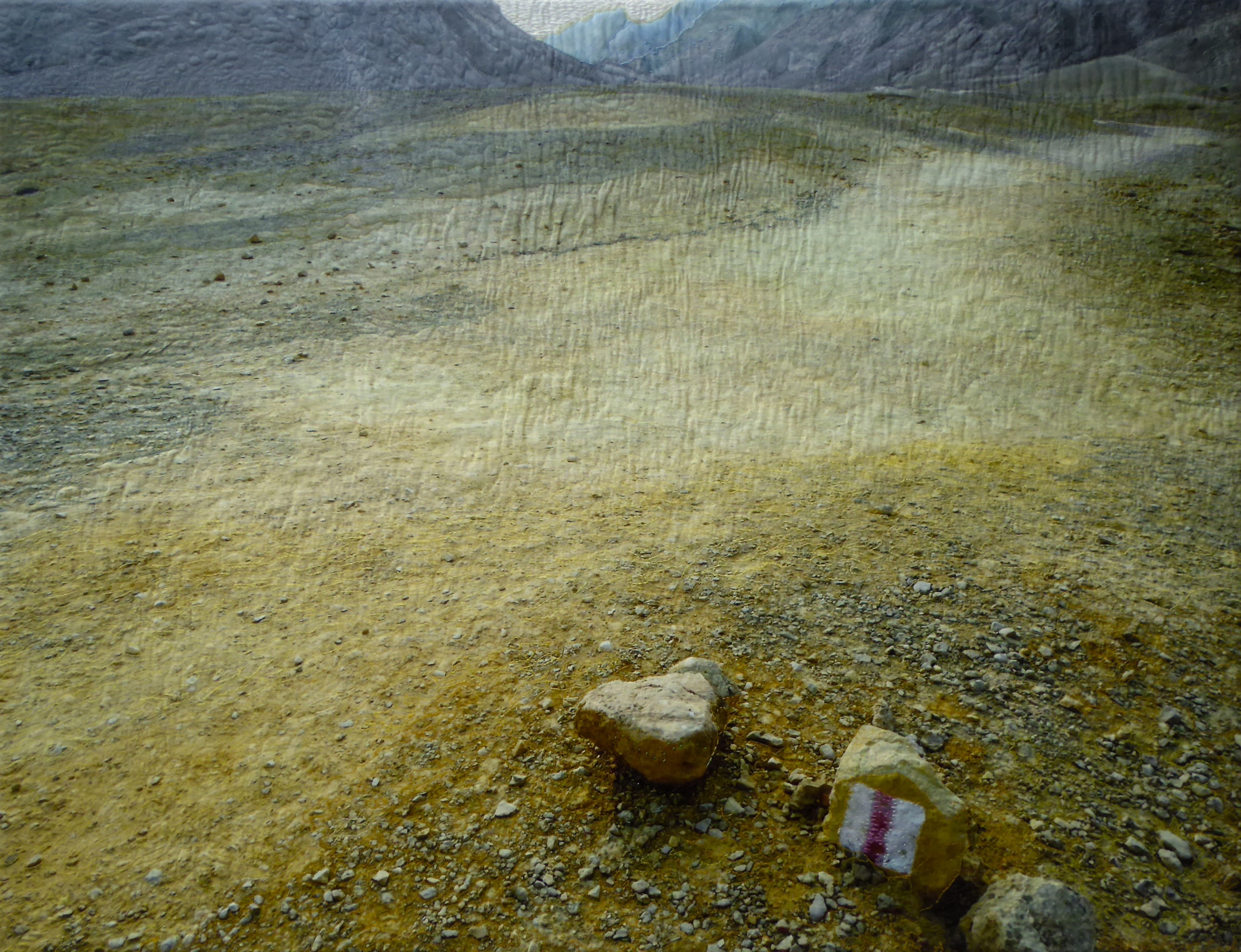 Ik ben een materialen mens, en maak samenvoegingen van verschillende materialen; foto’s, stoffen en borduursels, soms ook gecombineerd met hout, lood en steen, op wisselende formaten