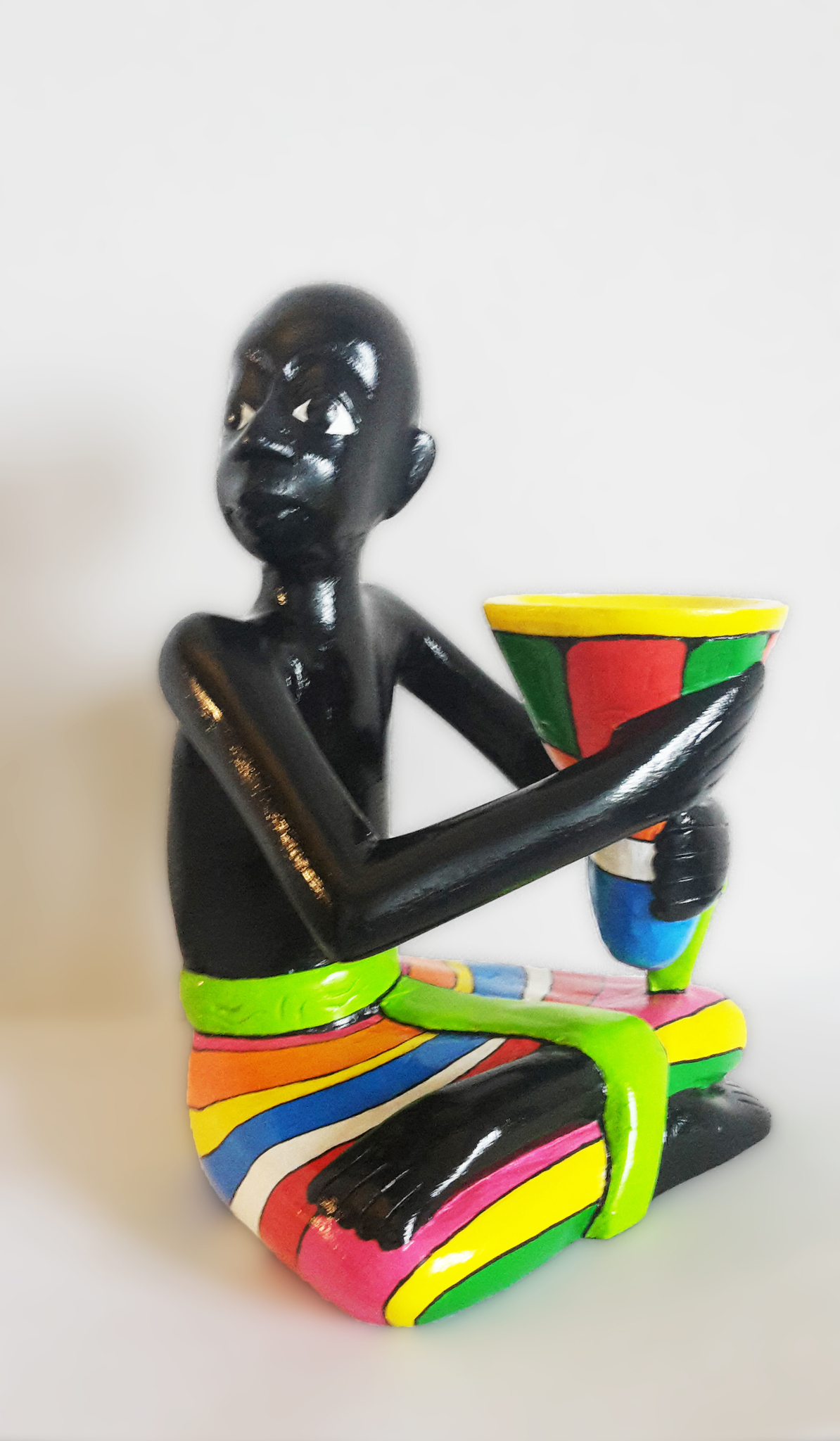 Modern Zwart Man Kleurrijk Beeld Afrikaans Kandelaar Kaars Persoon Rok