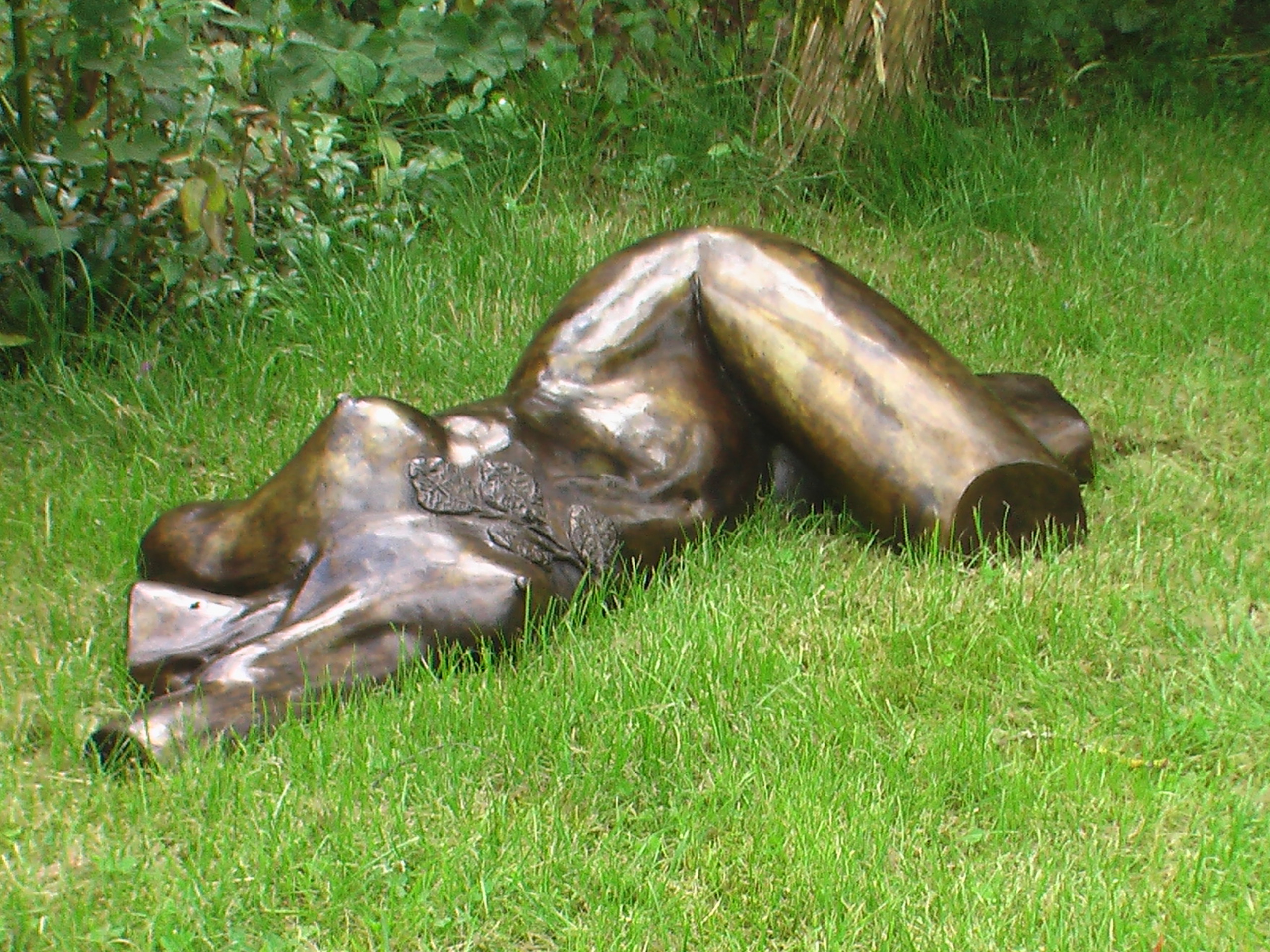 Liggende Torso Vrouw - Reclining Torso Female Materiaal/Material : Brons, Bronze Gewicht : 25 kg Gemaakt in/made in: Apeldoorn, 2003 oplage: max. 3 exemplaren, nog 3 ex. te koop. Opmerking: Na het maken van diverse staande torso's in klei en brons in de loop van jaren, heb ik deze liggende torso gemaakt. Het menselijk lichaam was interessant om vorm te geven om vormen en beweging te creëren. De patinering kan de ene keer iets donkerder zijn, de andere keer wat lichter.