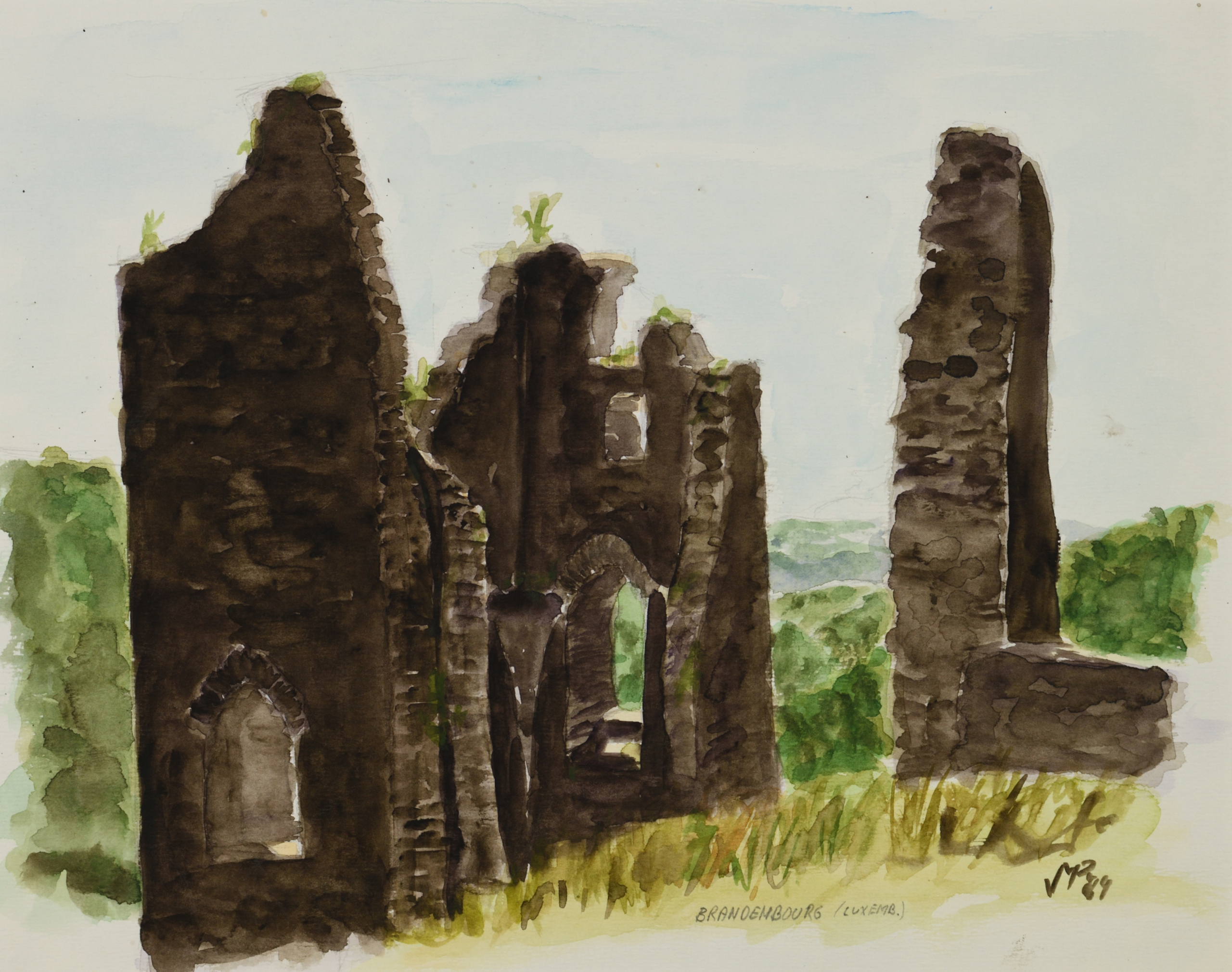 Luxemburg 1984. Wat was het warm en hoe fel het licht. Maar ik zou en ik moest die mysterieuze ruïnetoren van kasteel Brandenbourg schilderen.