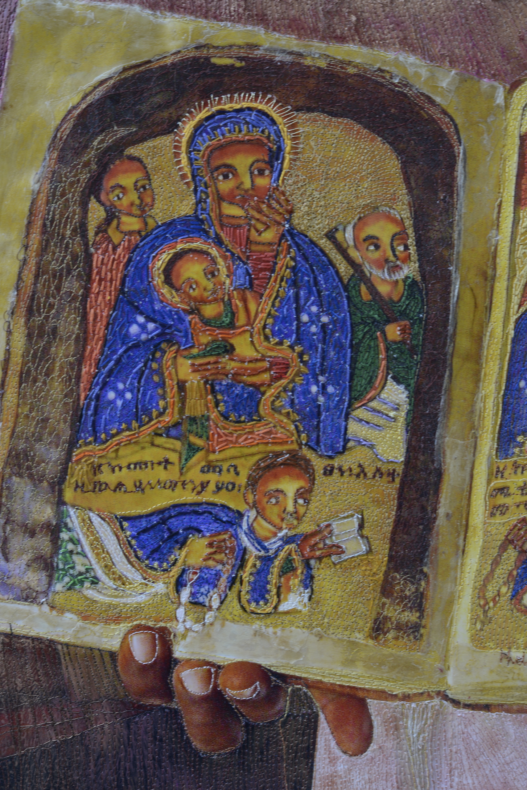 Ik ben een materialen mens, en maak samenvoegingen van verschillende materialen; foto’s, stoffen en borduursels, soms ook gecombineerd met hout, lood en steen, op wisselende formaten