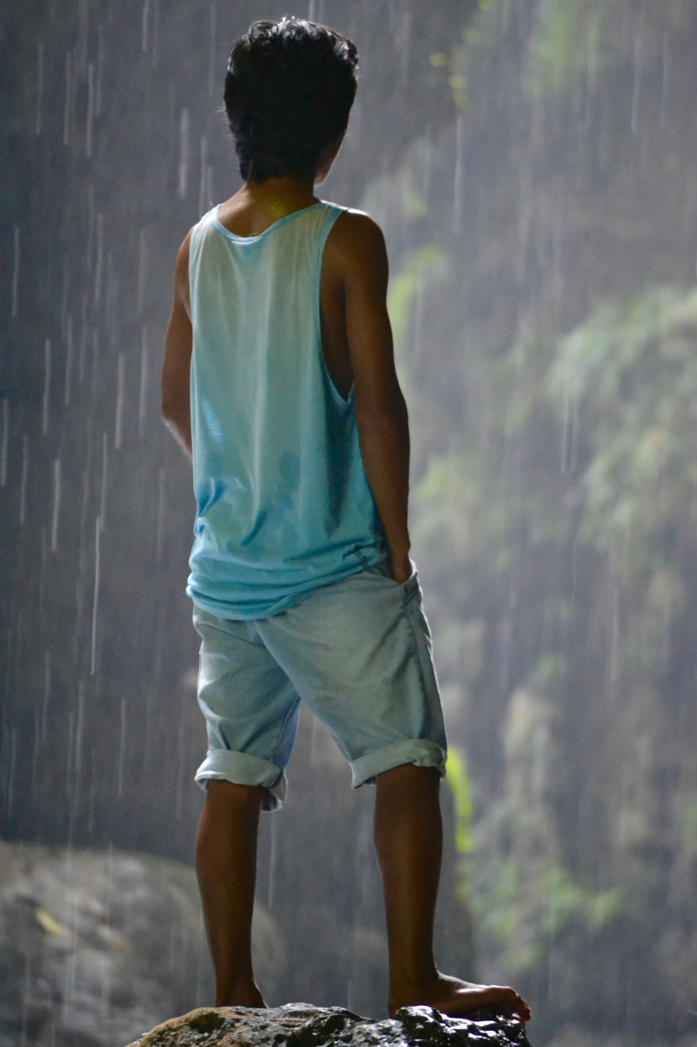 Tijdens een boottocht keek deze jonge gids naar de waterval