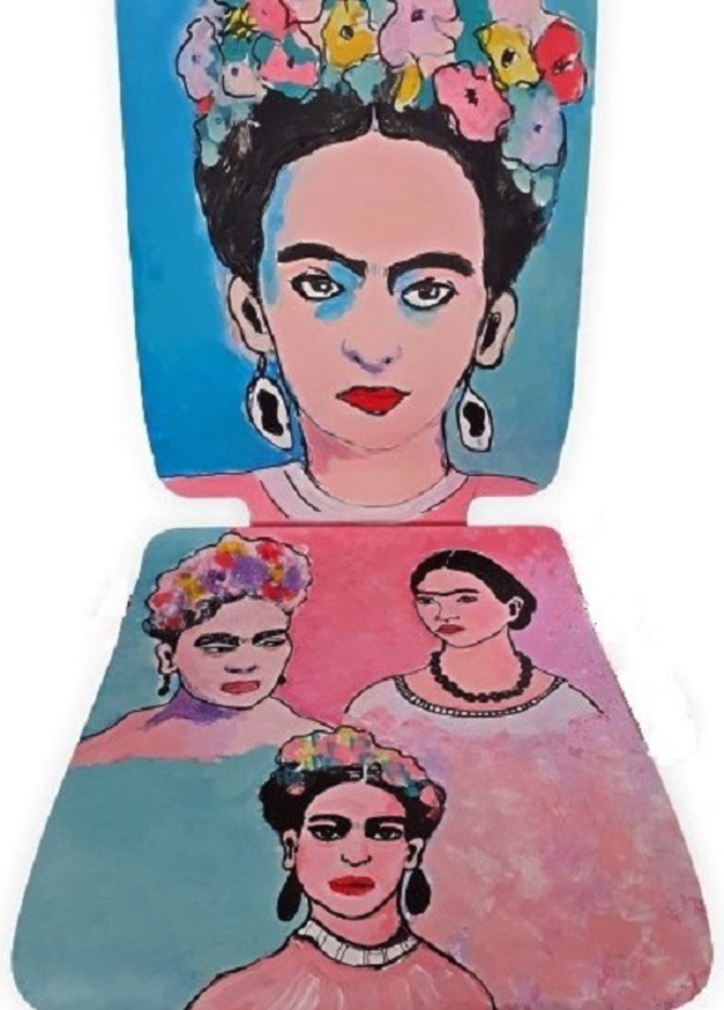 stoel beschilderd met verschillende frida kahlo portretten Ik beschilder stoelen in opdracht