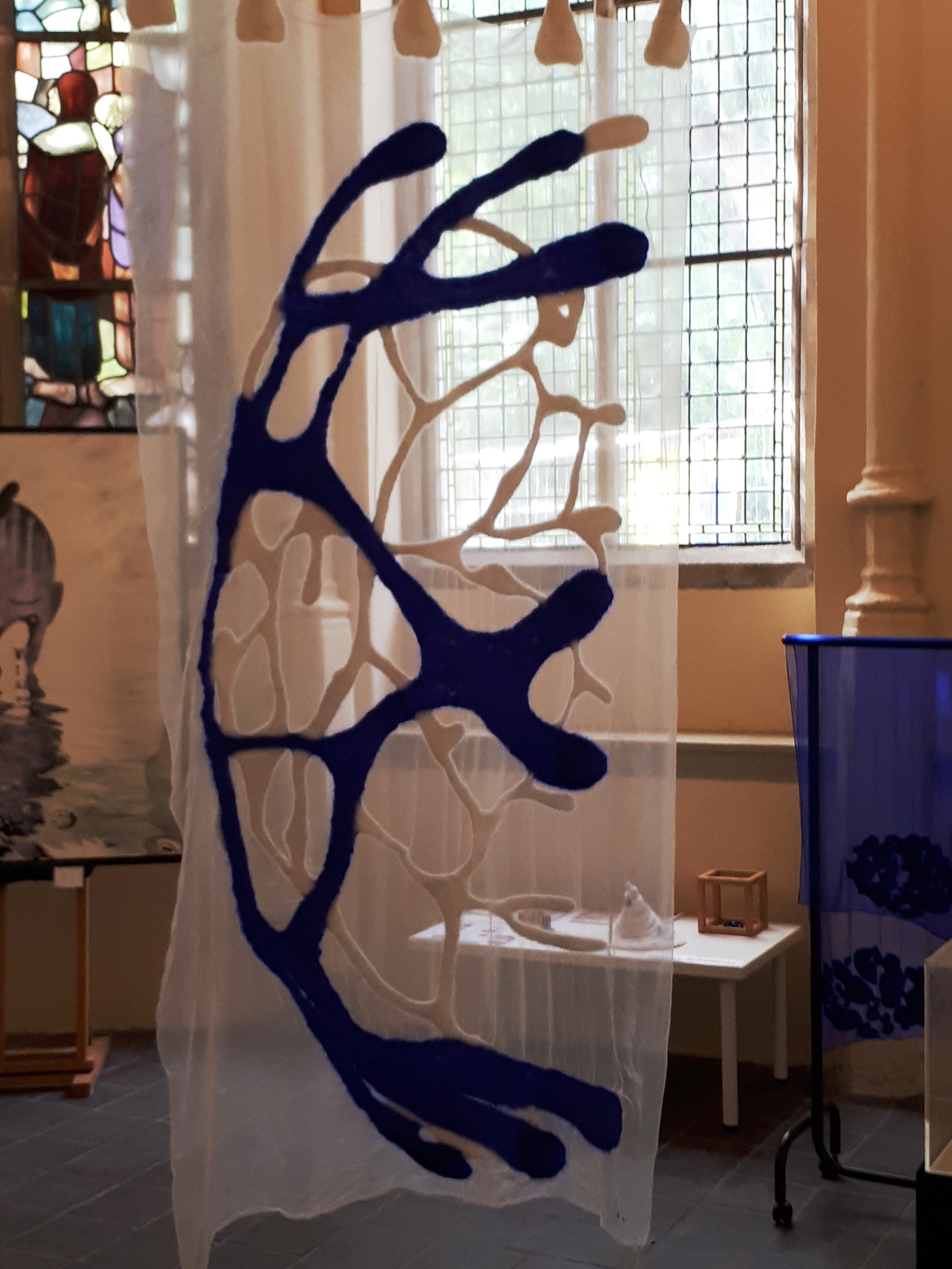Wit Blauw Zijde Wol Vilt White Kleed Koraal Bleu Coral Hangend Hanging Silk Cloth Felt Wool Scheltema Louky Loukyscheltema