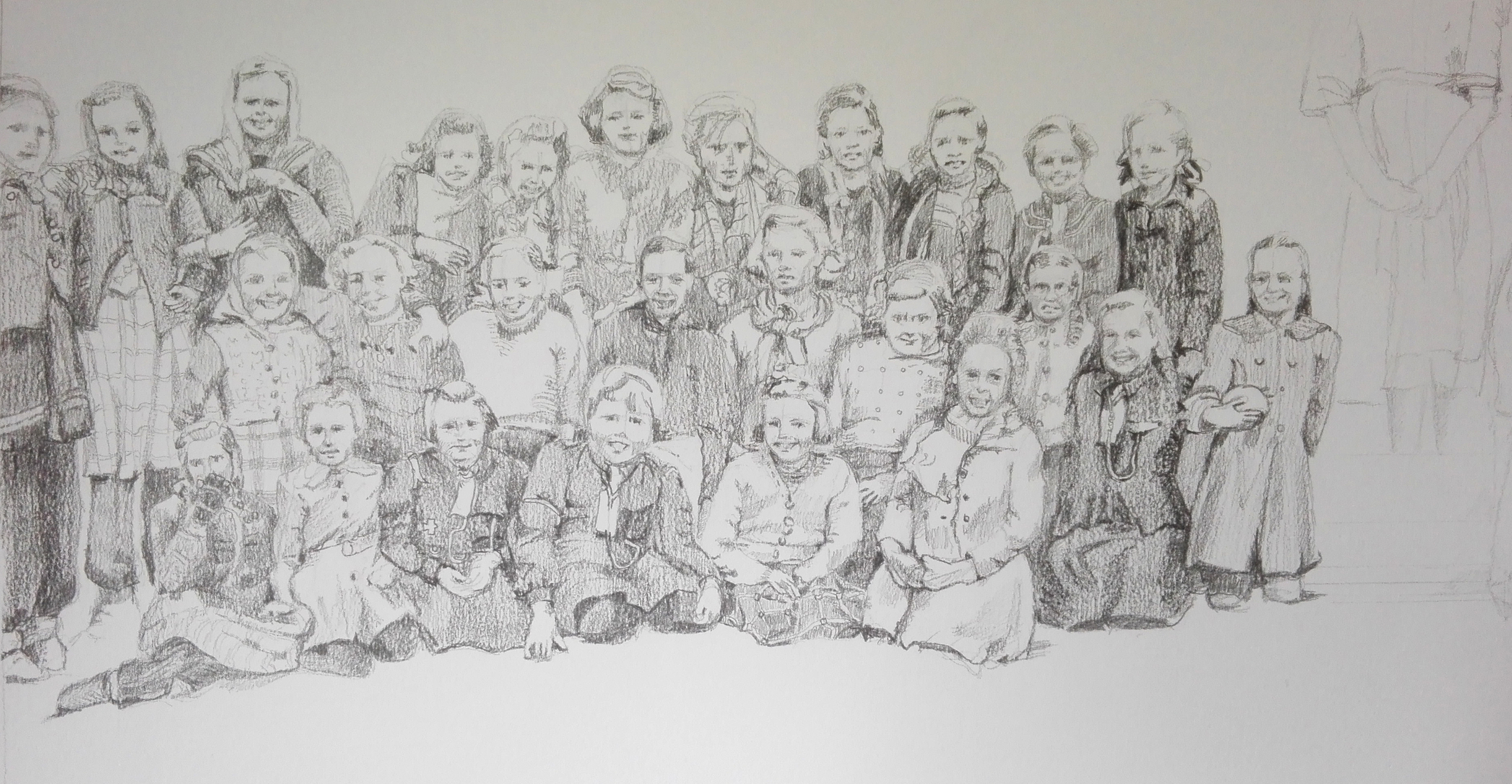 Dit is een detailtekening uit het grote geheel. Omdat een aantal meisjes uit deze klas in padvindstersuniform op de foto staat, is het aannemelijk dat deze foto op 22 februari 1951 is genomen. Op 22 februari is het binnen de meisjes scouting "Denkdag": de verjaardag van Lady Baden Powell, de vrouw van de oprichter Lord Baden Powell. Op denkdag gingen vroeger de meisjes in uniform naar school.