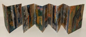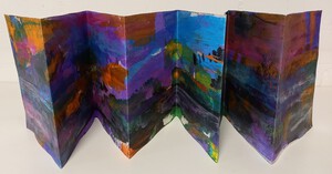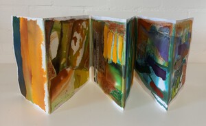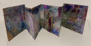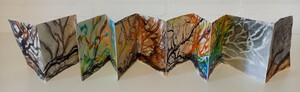 De achtergrond is geschilderd met acrylverf. Bewerking met was van een druktechniek op papier in reliëf, zorgt voor een 3D effect. Op het plexiglas een engelse tekst in een halftransparant turquoise gekleurd vlak. Deze vormen zorgen bij lichtval voor een schaduwwerking op de achtergrond. Deze schaduwval is een wezelijk onderdeel van het werk.