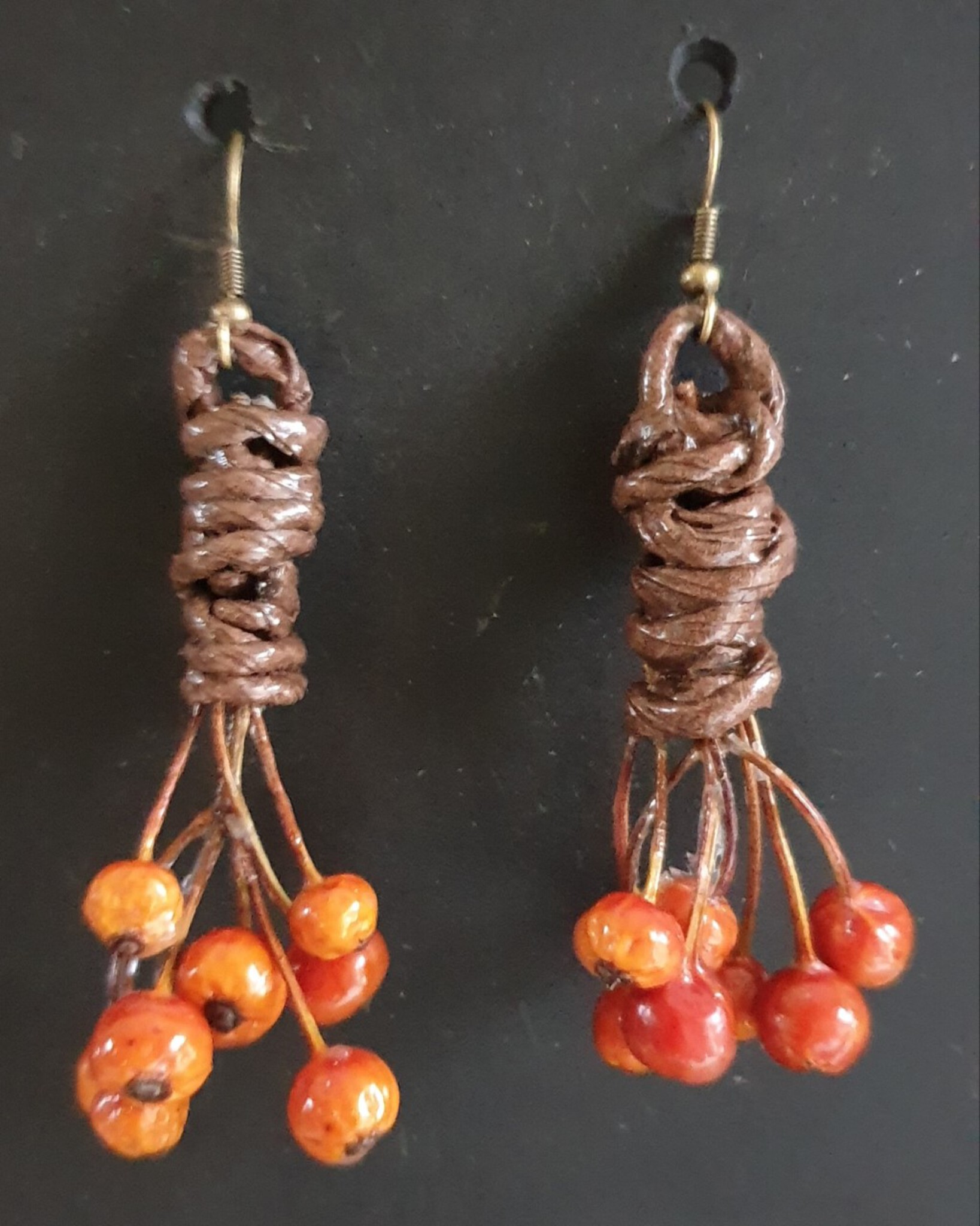 Oorbellen van natuurlijke materialen, bewerkt zodat het draagbaar is