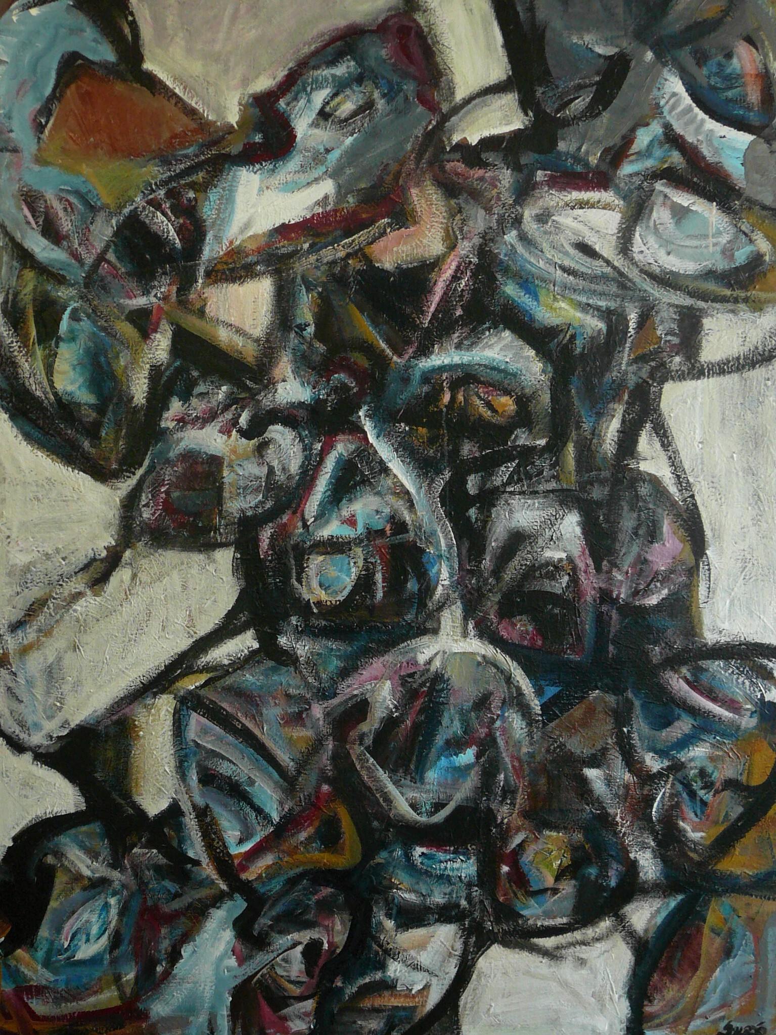 De schilderijen ontstaan intuïtief, er vormen zich emotionele en expressieve beelden; het Zijn en Schijn van de mens als waarneming en het onderlaagse gevoelsleven zijn ondefinieerbaar, maar voor haar in beeltenissen te vangen.