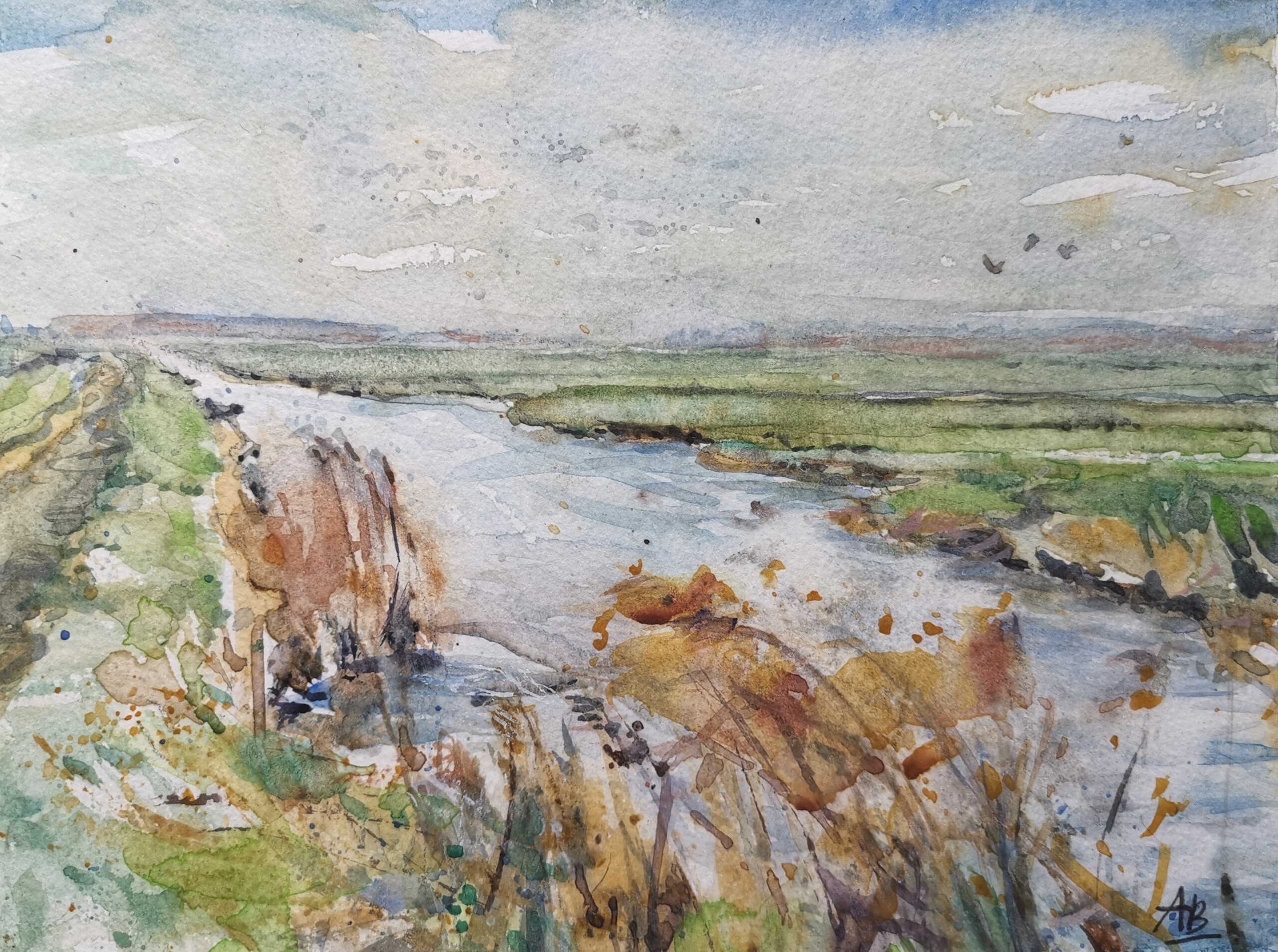 De inspiratie voor mijn aquarellen ligt in het landschap. Open velden, lange vertes, rustige of gejaagde wolkenluchten....dit alles trekt mijn aandacht. Ik dank nog altijd Peter van Midden (kunstenaar in Tiel), hij heeft me in aanraking gebracht met modeltekenen en aquarelleren.