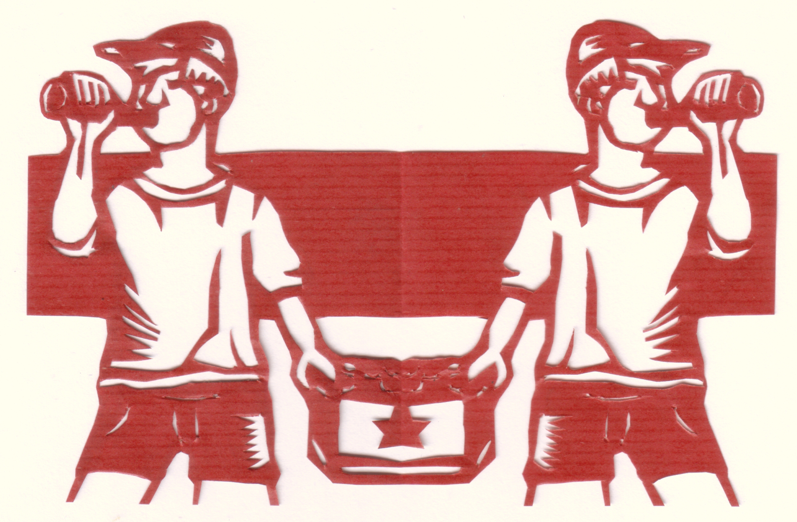 Bier Krat Jongens Petje Onnozel Knipwerk Knipsel Papierknipkunst Knipkunst Paper Cutout Decoupage Scherenschnitt