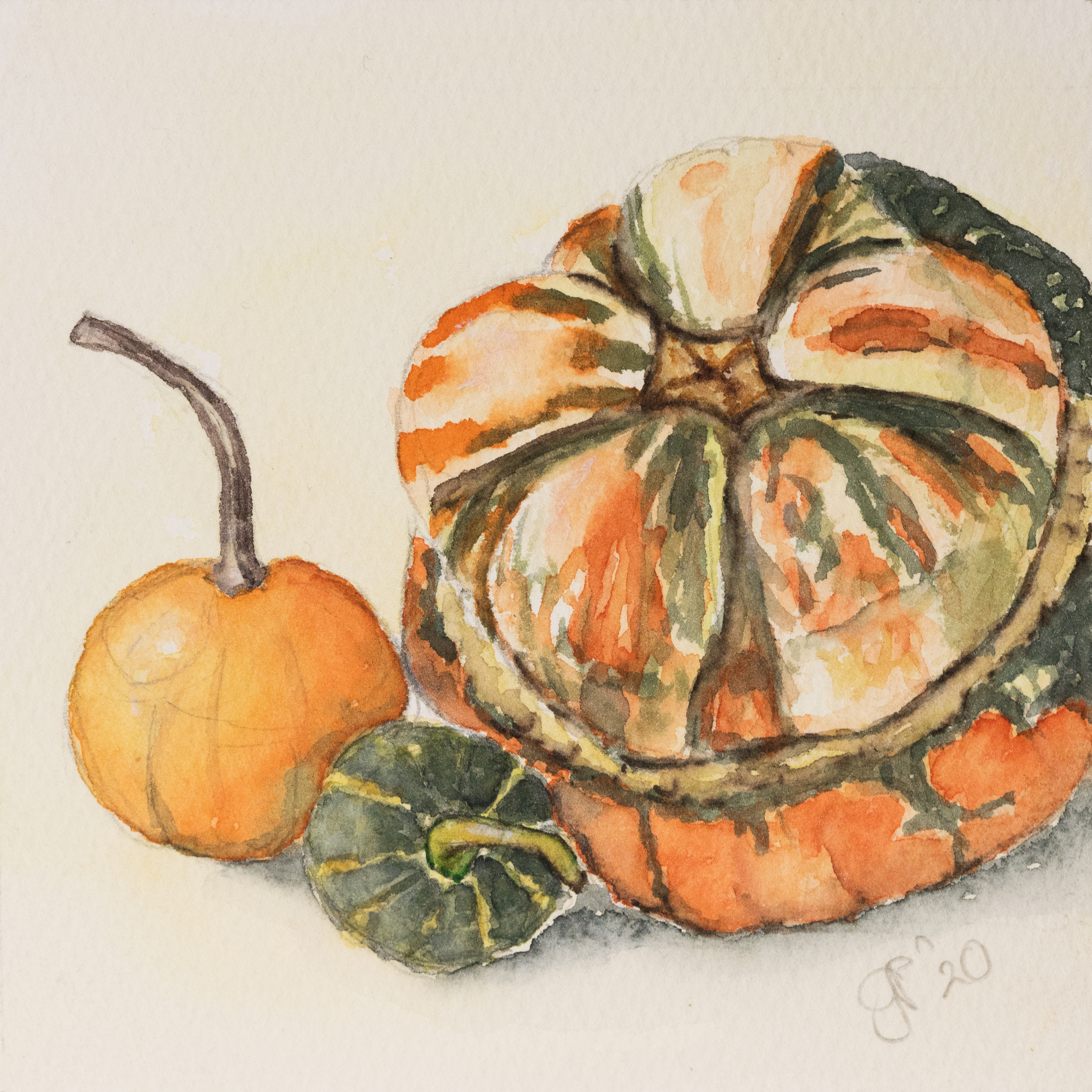 Kleurrijk Aquarel Natuur Herfst Watercolor Waterverf Kalebassen Pompoen Pompoenen Kalebas Aladdin