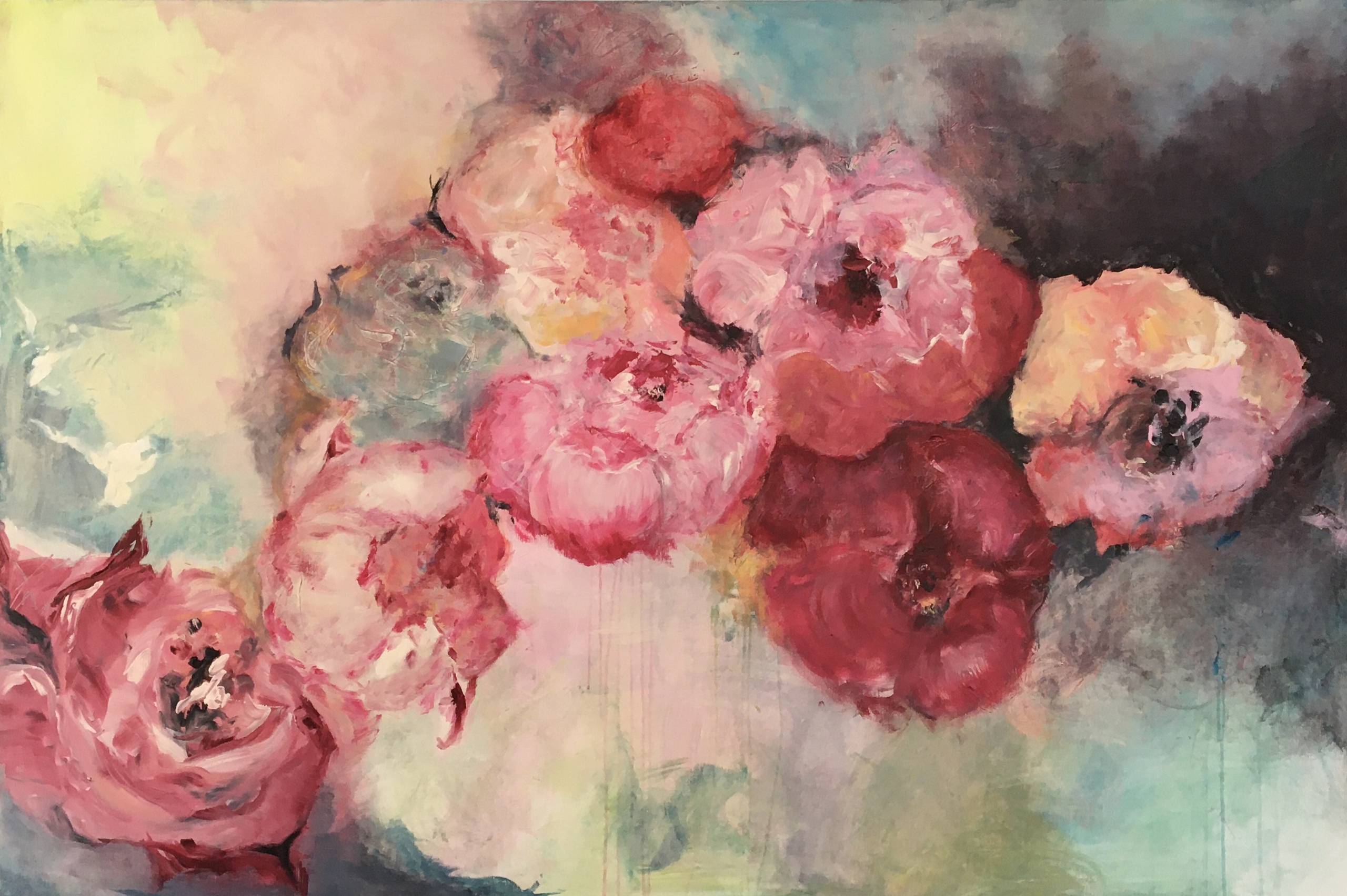 Spelend met licht, ruimte en kleur worden mijn schilderijen gevormd tot kleurrijke en expressieve creaties. Ik laat mij leiden door mijn gevoel en de wisselwerking tussen verschillende technieken en materialen. De verschillende lagen op het doek bloeien op tot levende creaties.