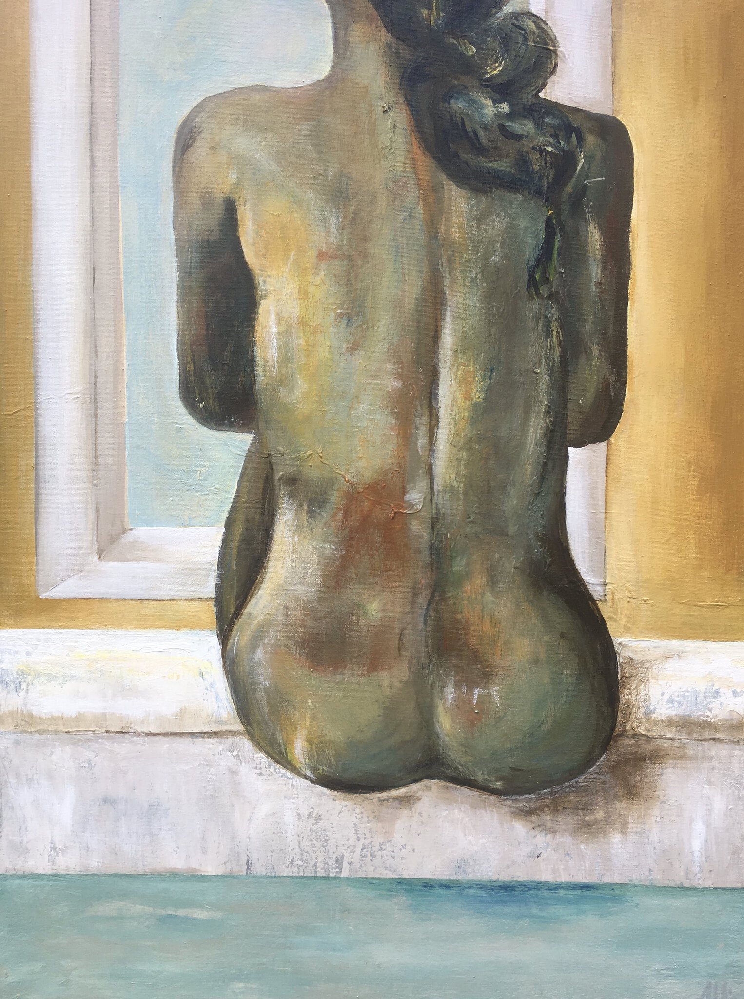 Geel Vrouw Naakt Venster Sfeer Bad
