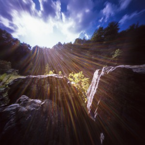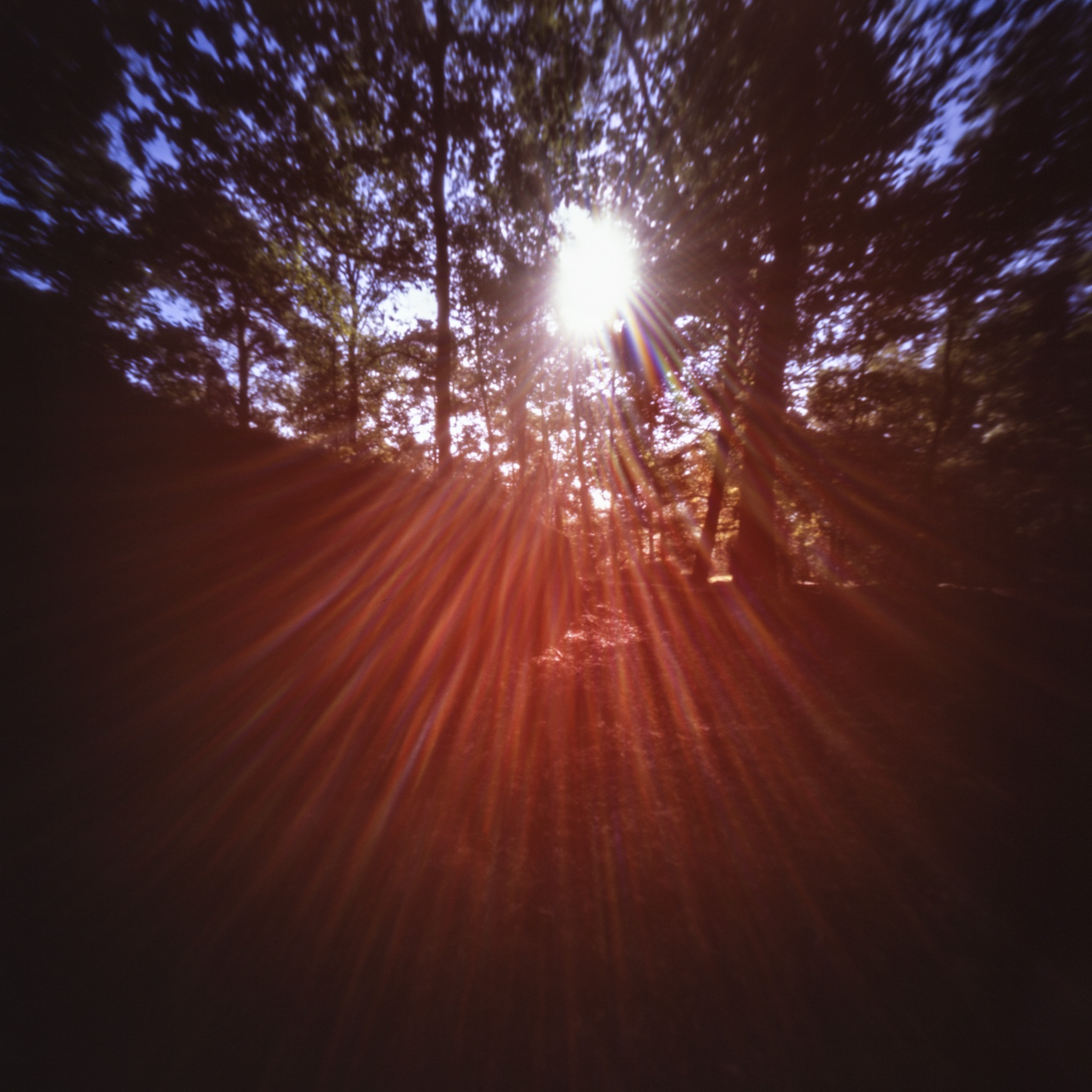Analoge pinhole foto. Tegelichtopname. Mastenbos, België 2019
