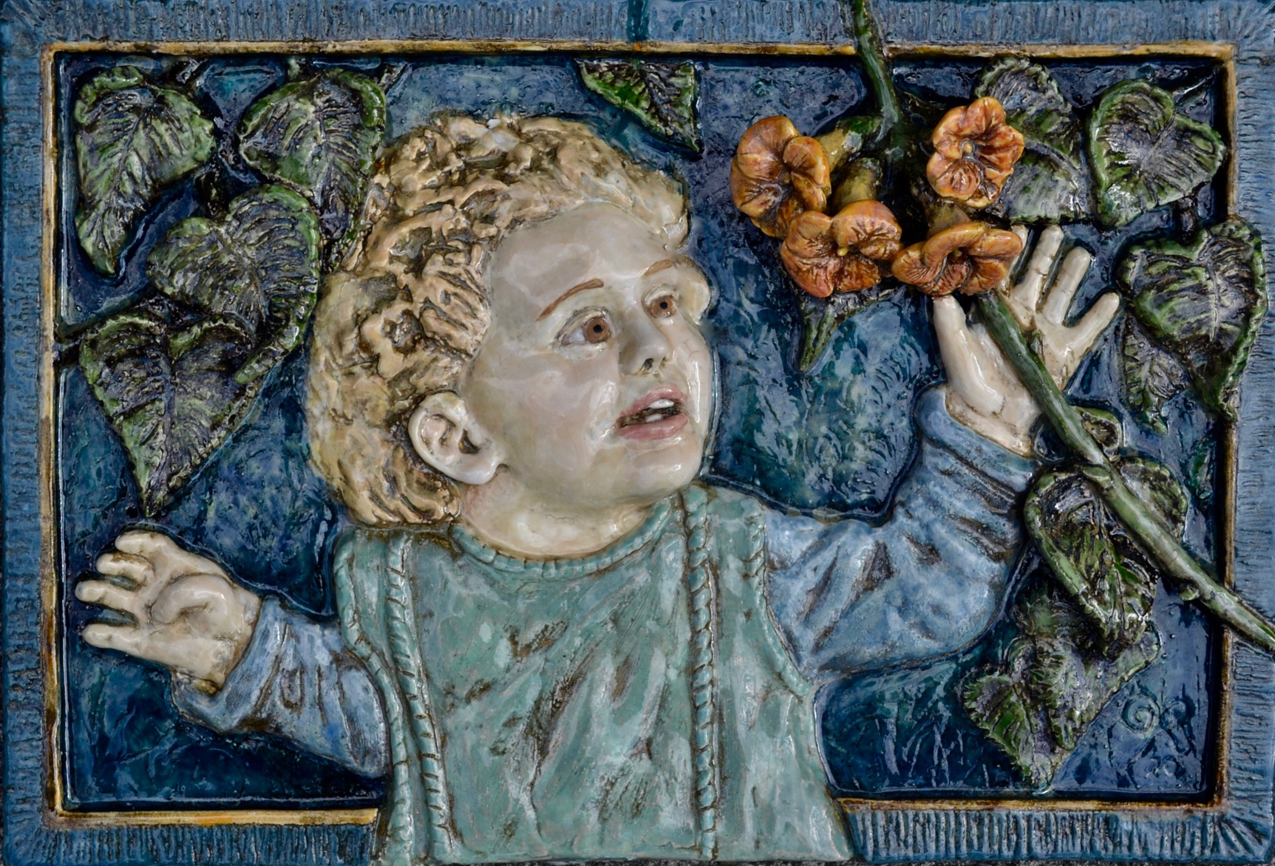 Bloemen Kind Portret Harderwijk Waterfront Gevelsteen Gevelplaquette Trompetplant