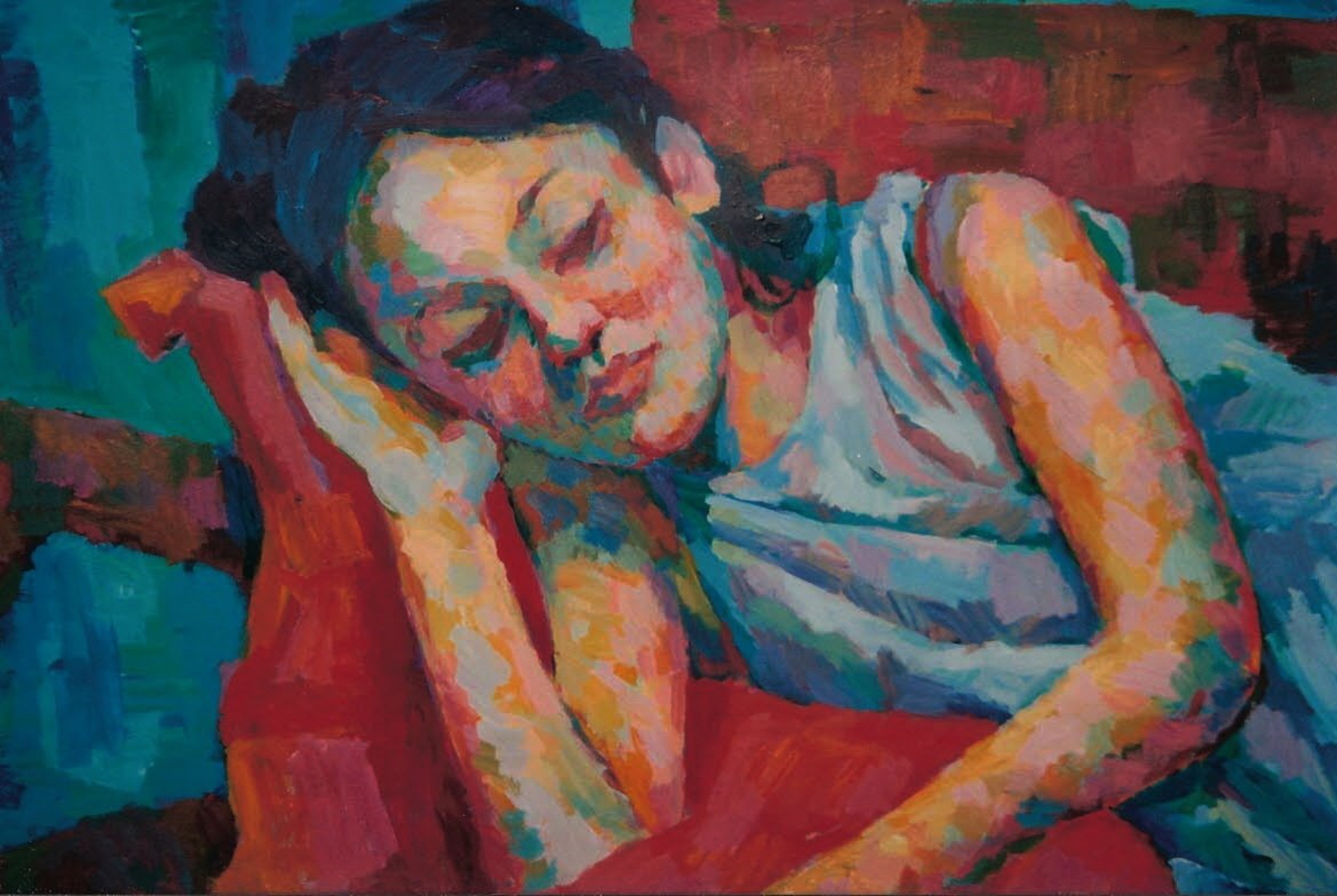 Werkt voornamelijk met Acrylverf, potlood en inkt. Is autodidakt.