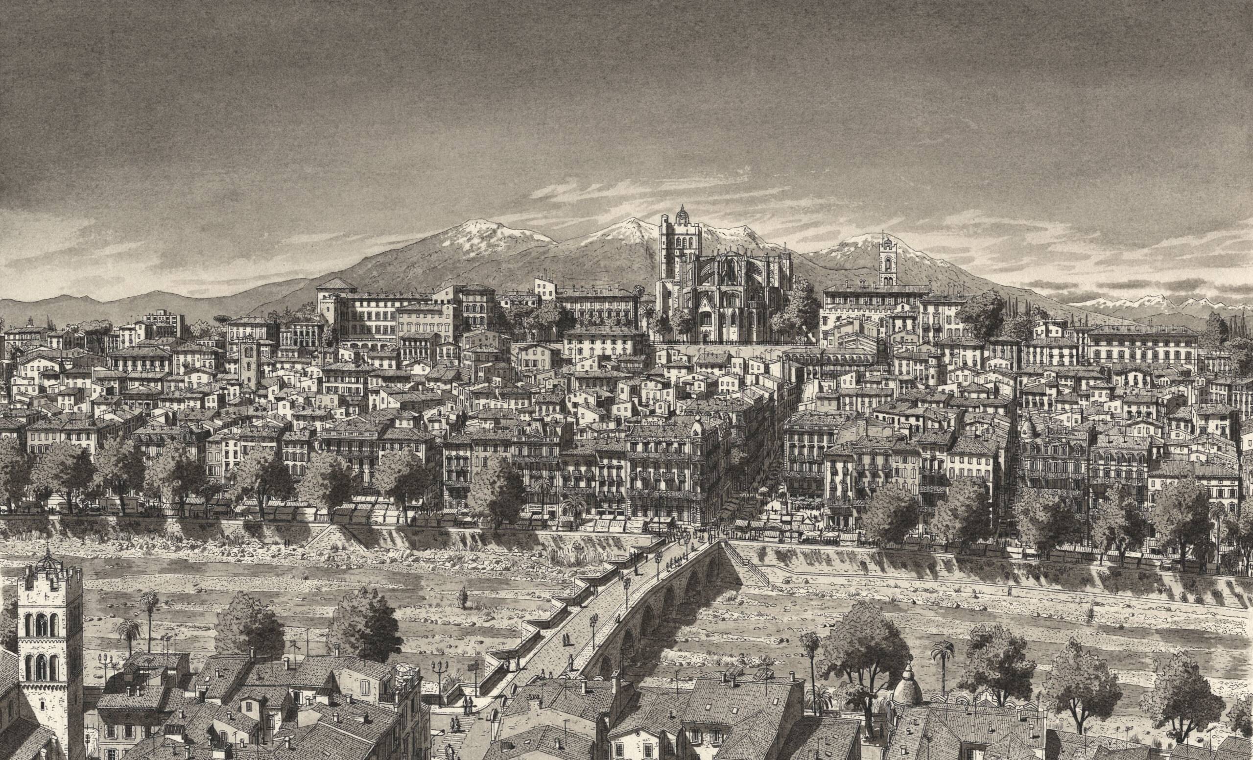 Stad City Tekening Drawing Kunst Art Frankrijk France Bergen Mountains Pyreneeën Pyrenees Realisme Realism Architecture Architectuur