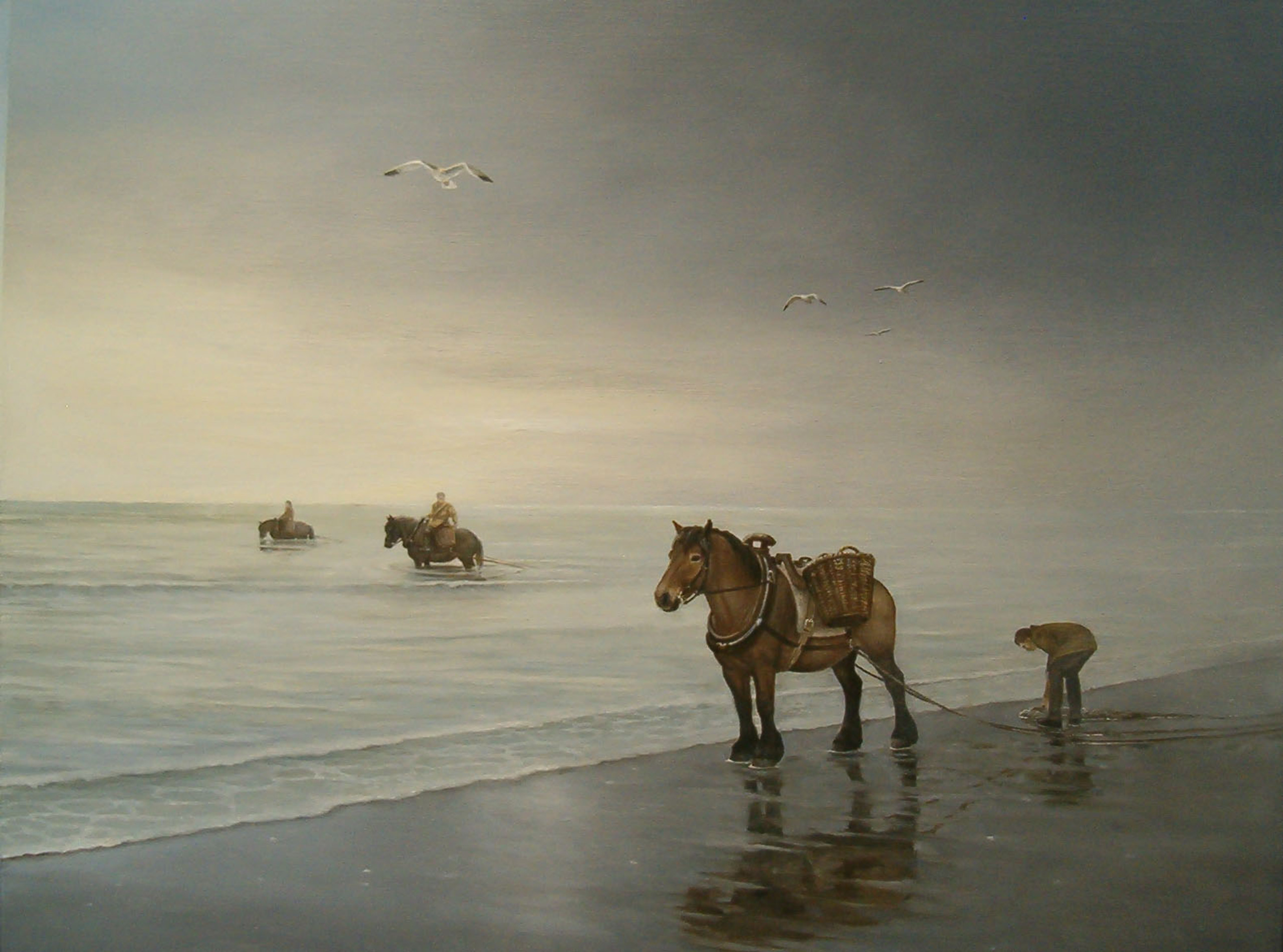 De zeepaarden van de garnalenvissers. The seahorses of the shrimpfishers.