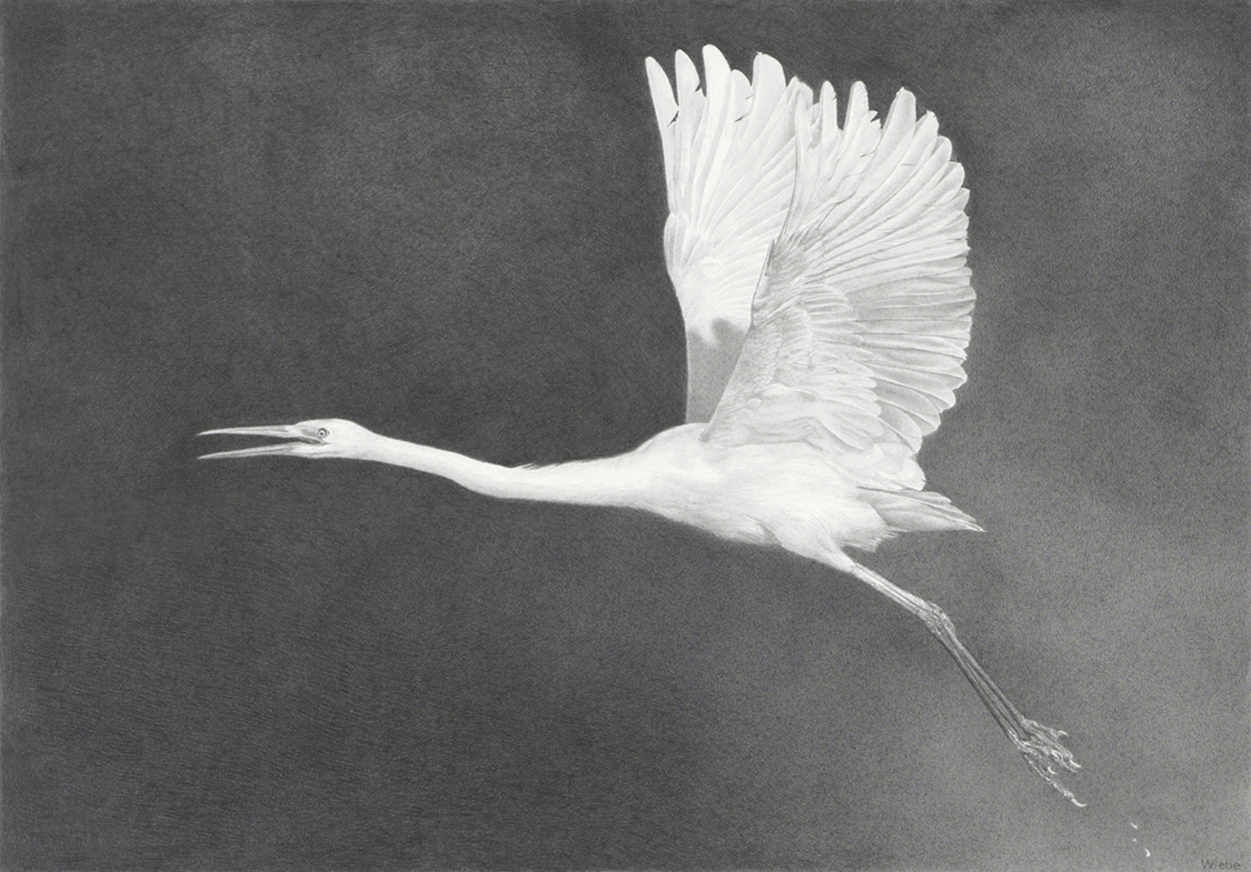 In deze tekening wil ik laten zien dat een grote zilverreiger in het donker bijna licht lijkt te geven.