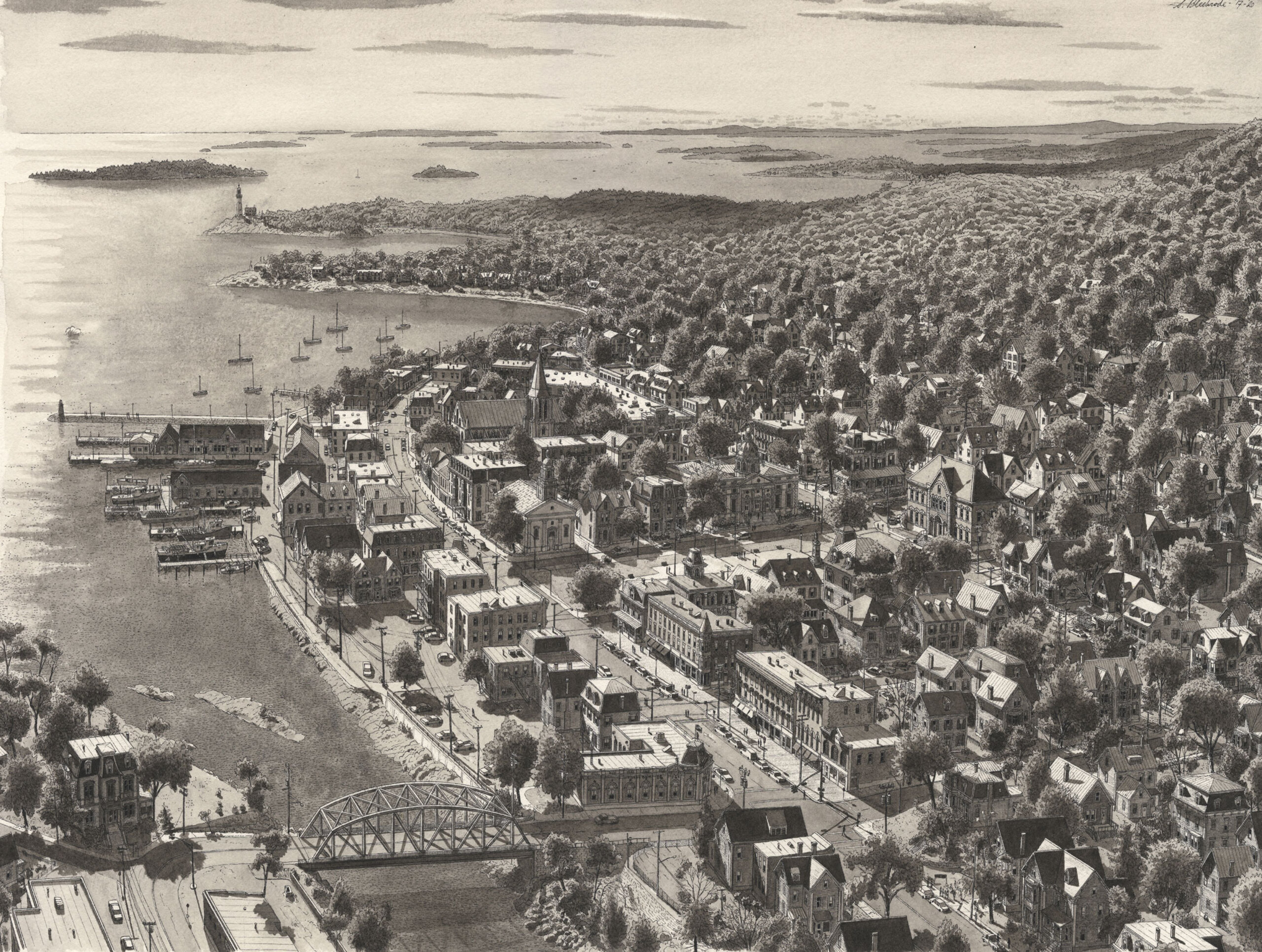 Een verzonnen kustplaats in de staat Maine. De architectuur en het landschap zijn gebaseerd op de omgeving van Penobscot Bay en Acadia National Park.