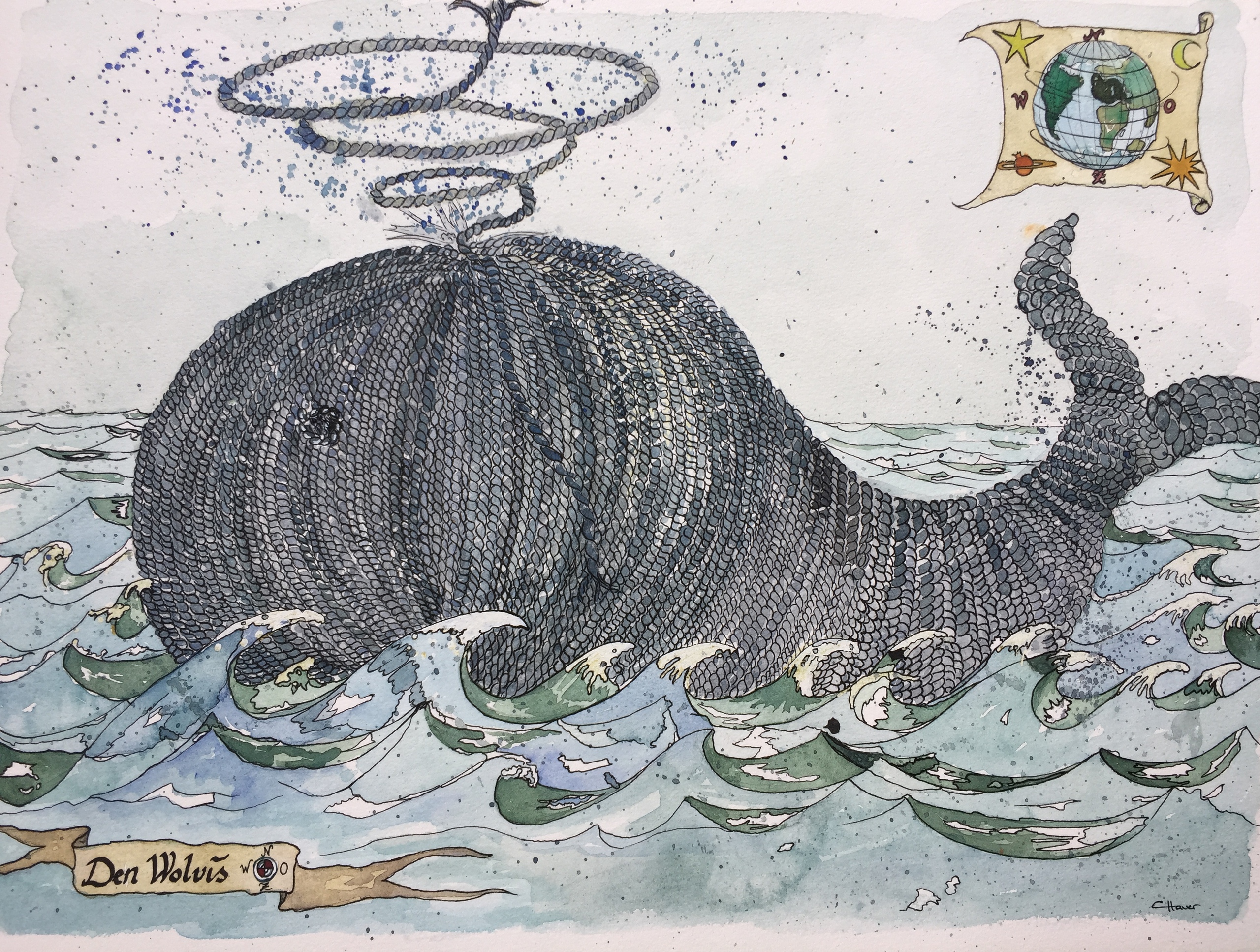 Blauw Blue Water Vis Wol Natuur Old Textiel Oude Zeegroen Golven Visserij Sea Map Whale Waves Zeekaart Carolien Haver