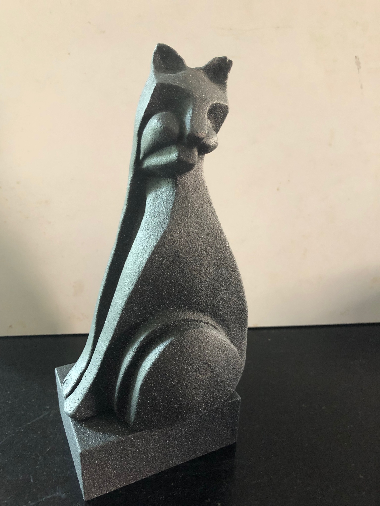 Zwarte kat van keramiek op een sokkel