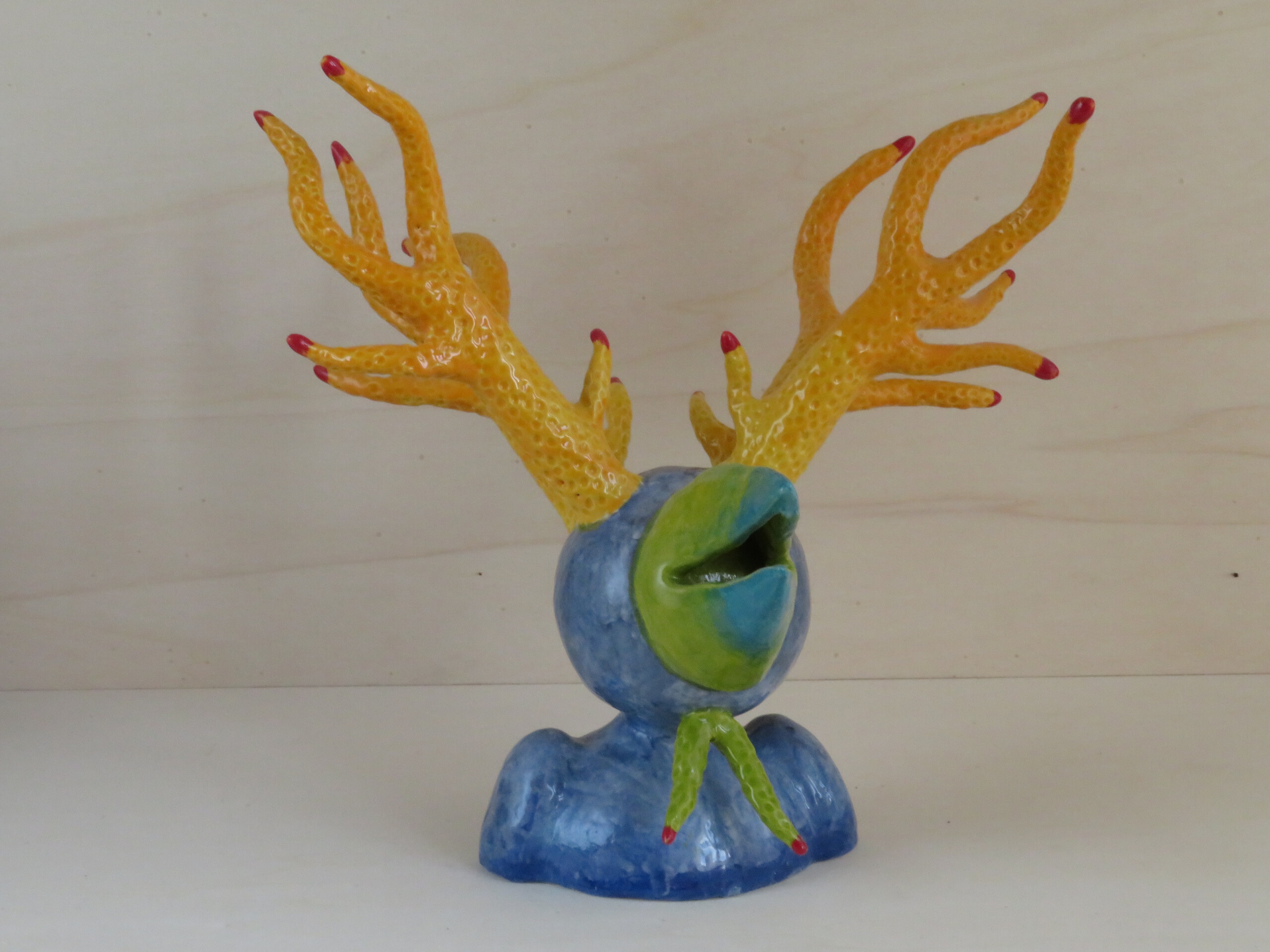 Ik ben Bianca de Leuw (1968) en woon en werk in Breda. Via sculptuur/monumentaal op de kunstacademie in Breda, vilt hoeden maken, uniek kinderspeelgoed maken, veel lessen en workshops op breed beeldend vlak ben ik bij mijn eerste liefde teruggekomen: KLEI! Ik speel in mijn werk graag met onvolkomenheid/onvolmaaktheid. Er is altijd iets wat niet klopt. Voor mij zit daar precies de schoonheid in. Dat kan heel klein zijn, een scheve neus of wat rigoureuzer, een vogelkop met een gewei op een menselijke romp of juist door toeval een barst of een scheurtje, misschien wel extra benadrukt door een afwijkend kleurtje. Ik vind het leuk om af en toe gebruiksvoorwerpen te maken en natuurlijk zijn dit dan ook geen "perfecte" vormen. Ieder ding is daarmee ook uniek en heeft zijn eigen schoonheid.