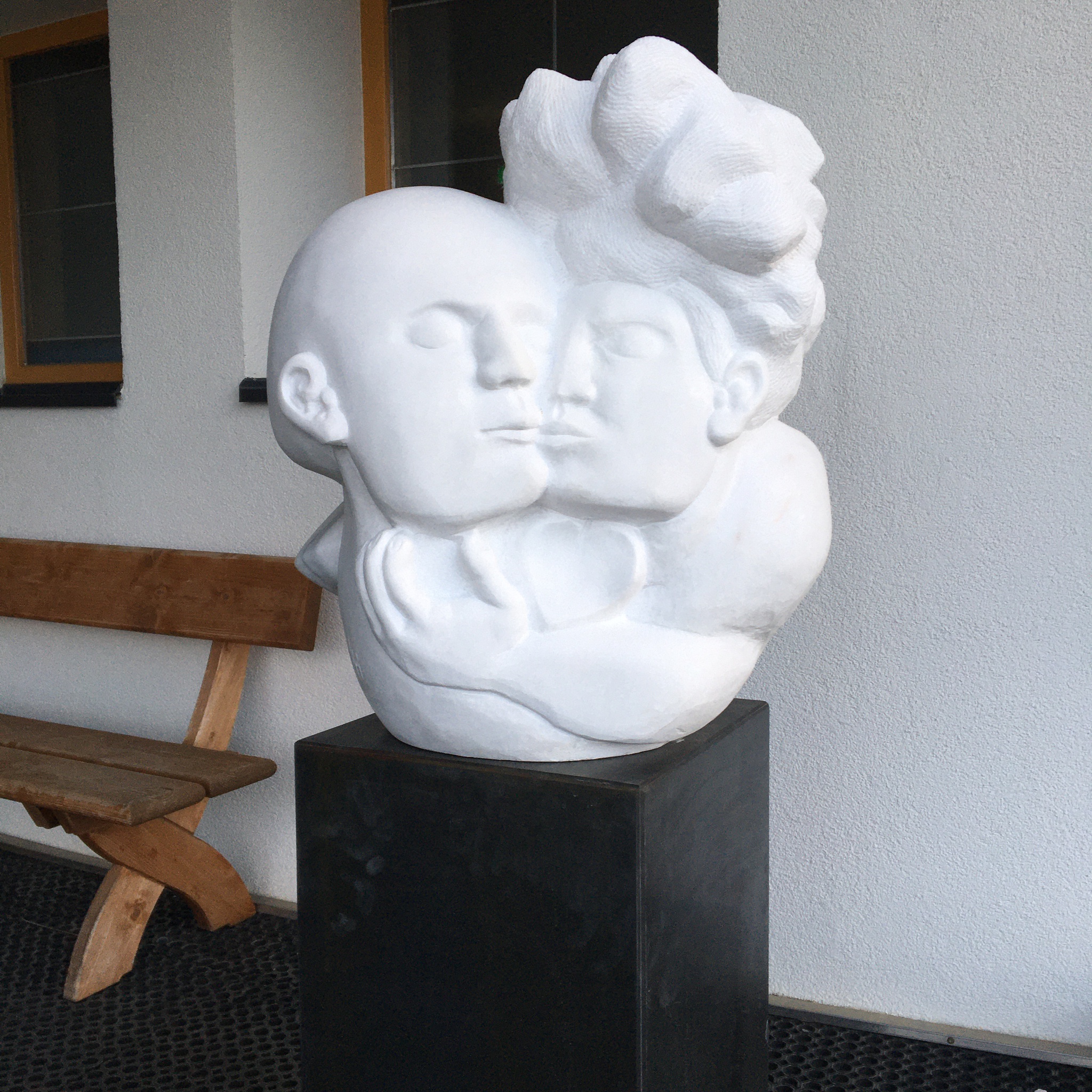 Dit beeld is vervaardigd op een grote hoogte op het Schönjoch (2440m) in Fiss, Tirol, Oostenrijk. Het materiaal is Laaser Marmor / Lasa Marmo. Sokkel H80, Nero Victorio Ik heb dit beeld gemaakt tijdens de kunstmanifestatie: Kunst am Berg 2020 en het is nu te zien en te koop in de beeldentuin van Abdy Rolduc te Kerkrade. Contact: leohorbach@home.nl of 0031 6 38541461