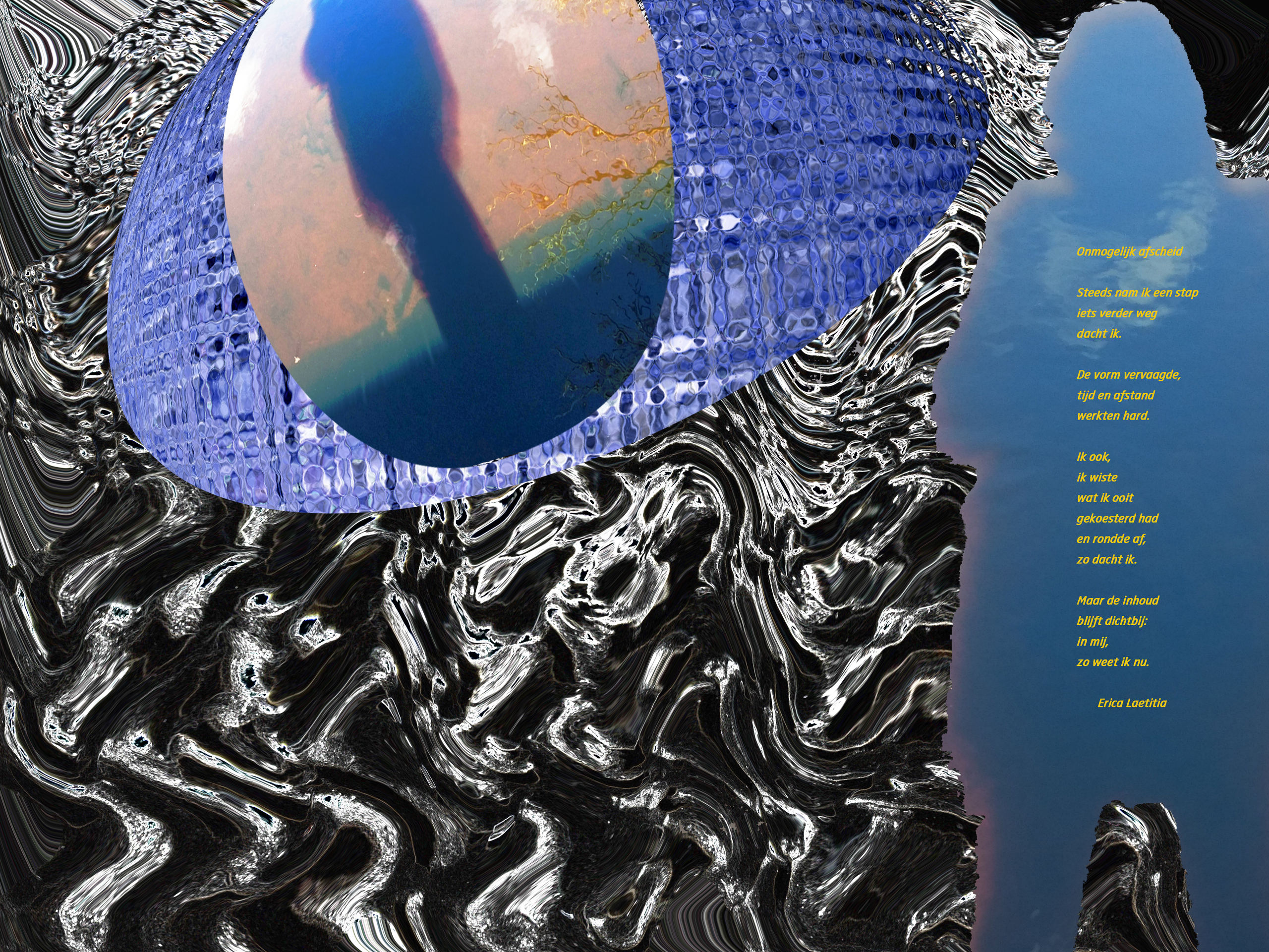 Dit zelfportret is een goede representant van mijn aluprints: diverse digitaal bewerkte foto-elementen die samen één verhaal vertellen, met of zonder gedicht.