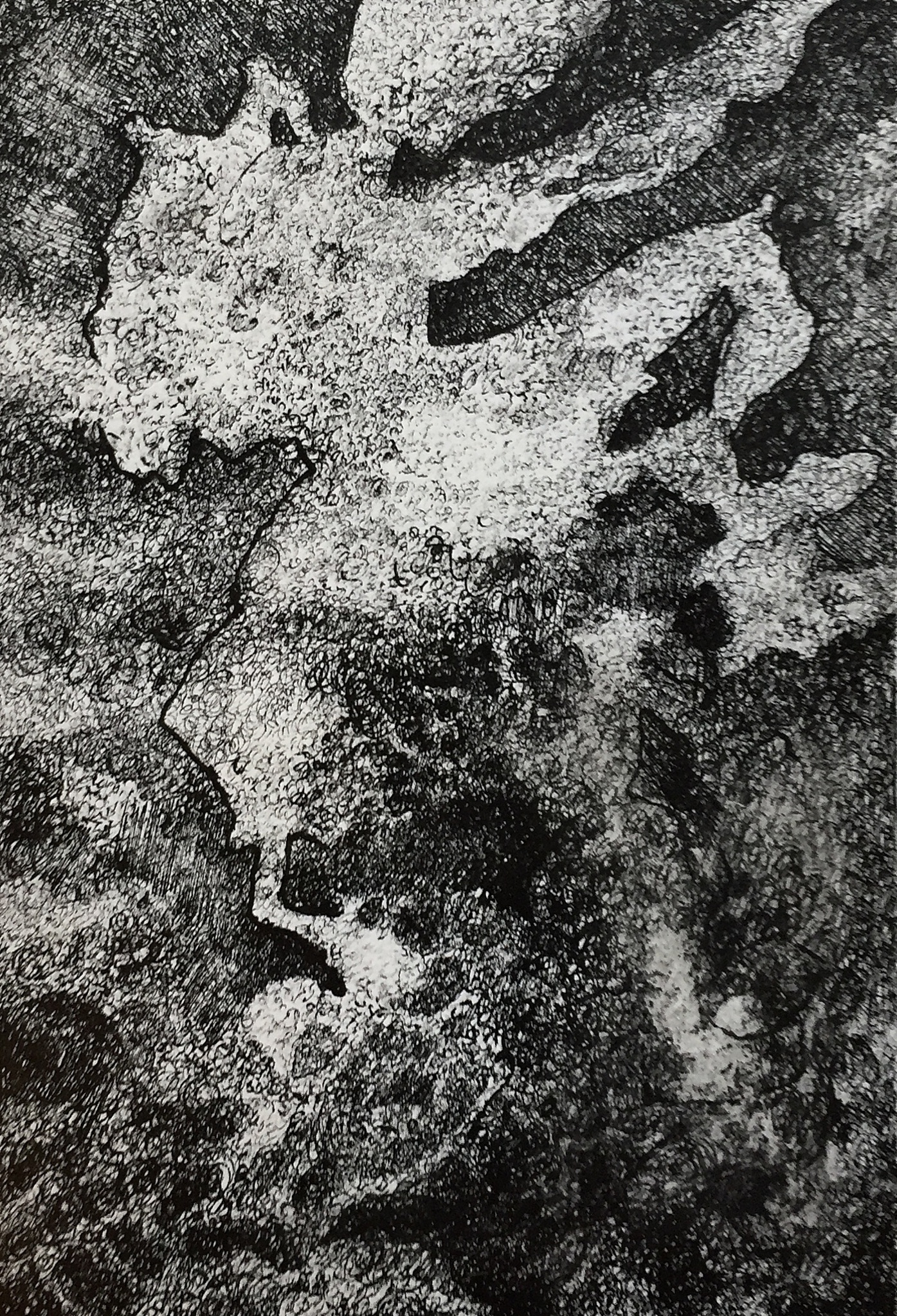 Werkt voornamelijk met Acrylverf, potlood en inkt. Is autodidakt.
