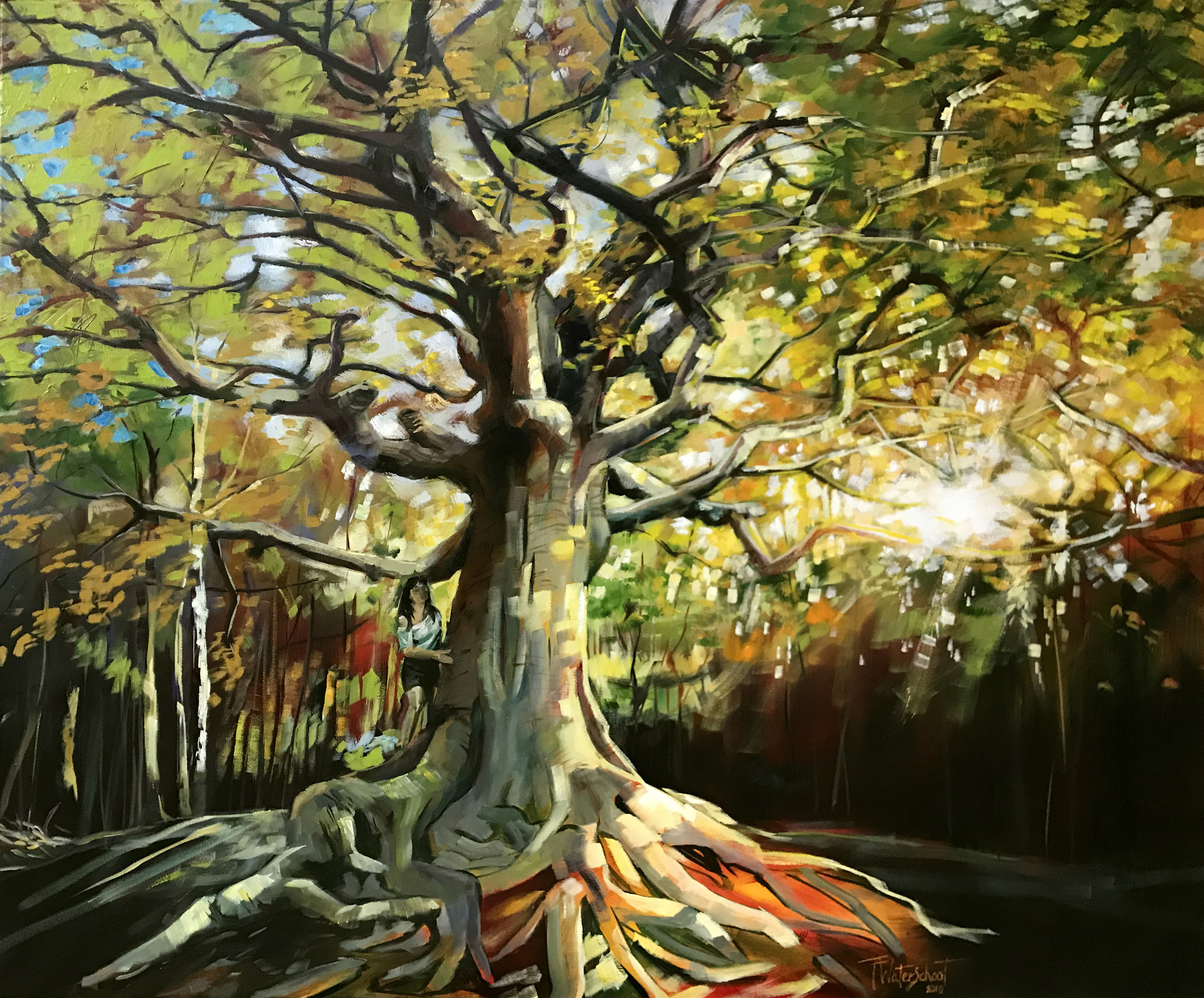 Heksenboom, boom van het jaar 2019, olieverf op canvas, 10 x 120 cm
