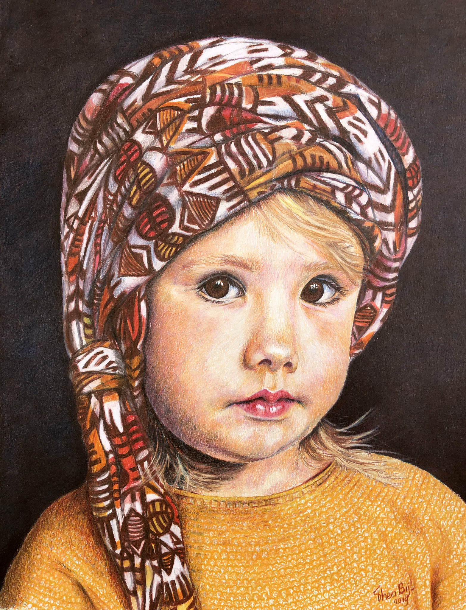 Portret Isa Belle, 30 x 40 cm, kleurpotlood-tekening Caran d'Ache Luminance.
