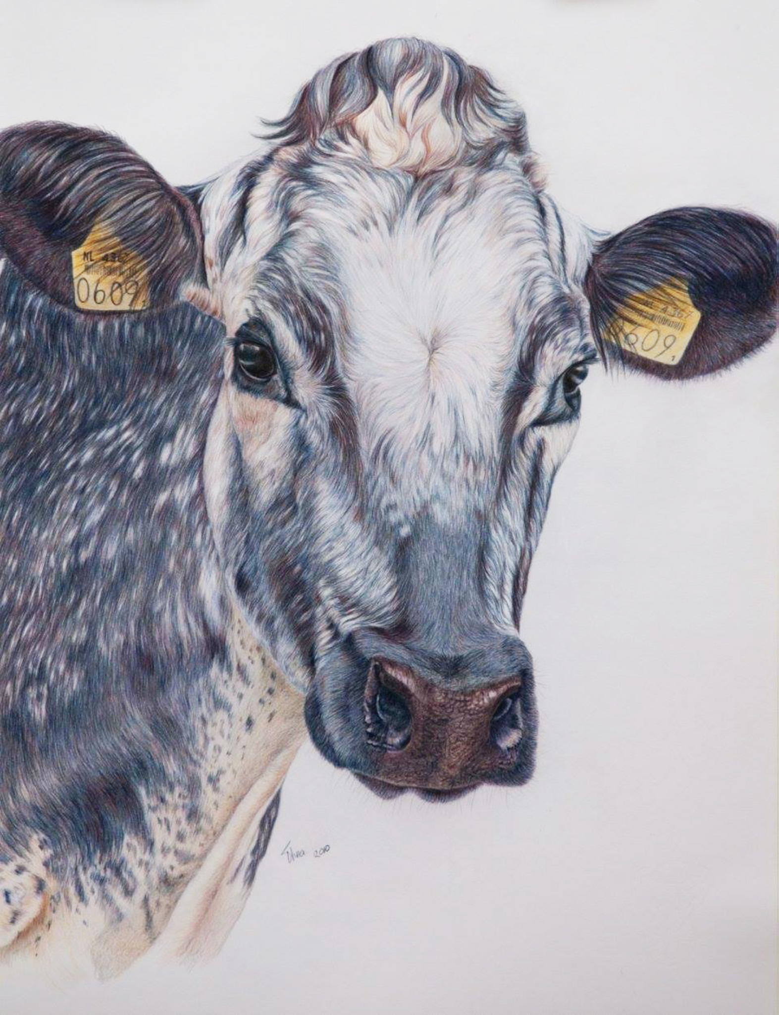 Witrugkoe (100.000 liter-koe), 60 x 80 cm, kleurpotlood-tekening Caran d'Ache Luminance.