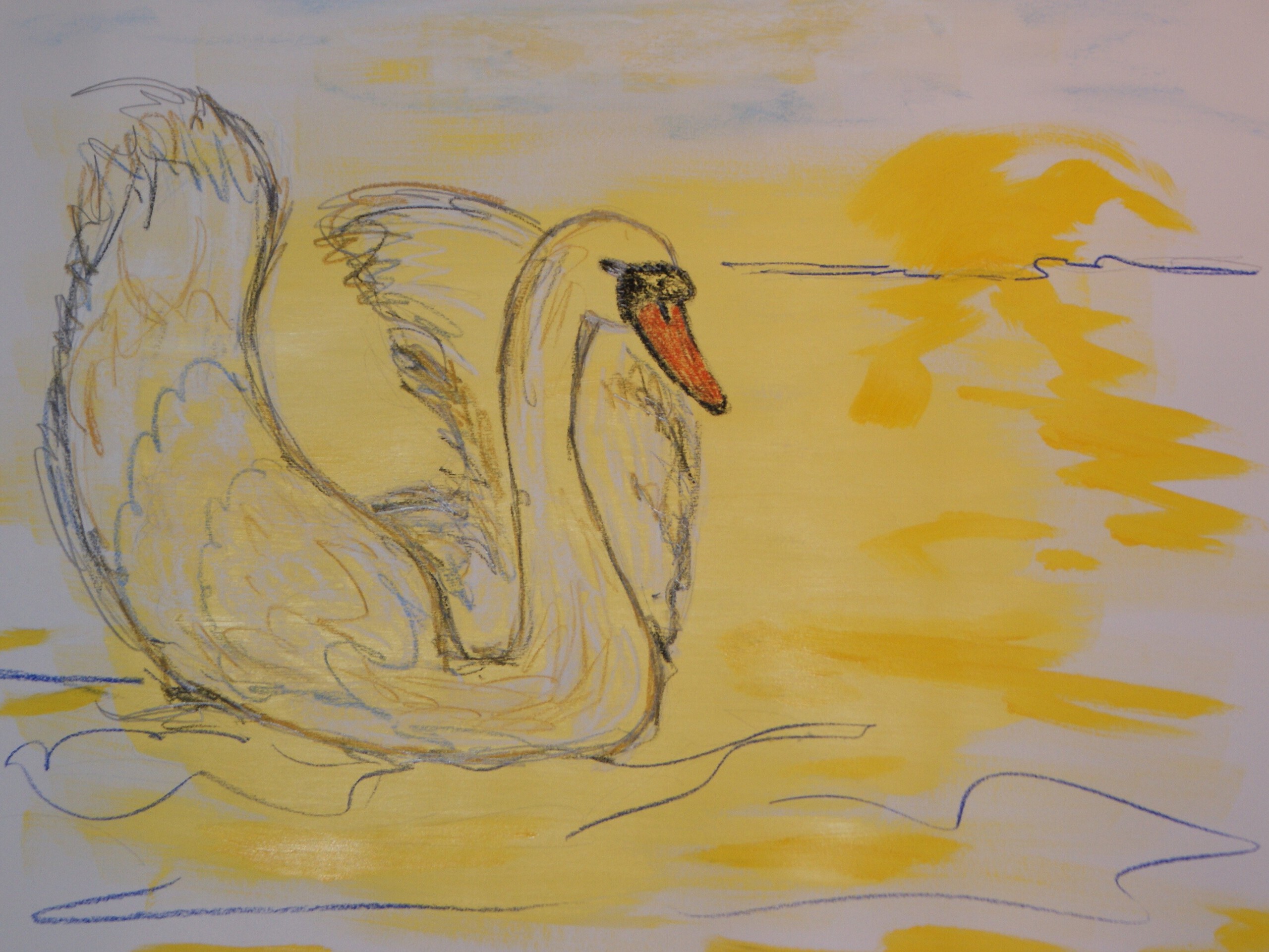 In opdracht gemaakt voor particulier die op een park "Zwaan" genaamd , hun huisje wilden versieren met een doek. Op dit doek moest een zwaan geschilderd zijn.