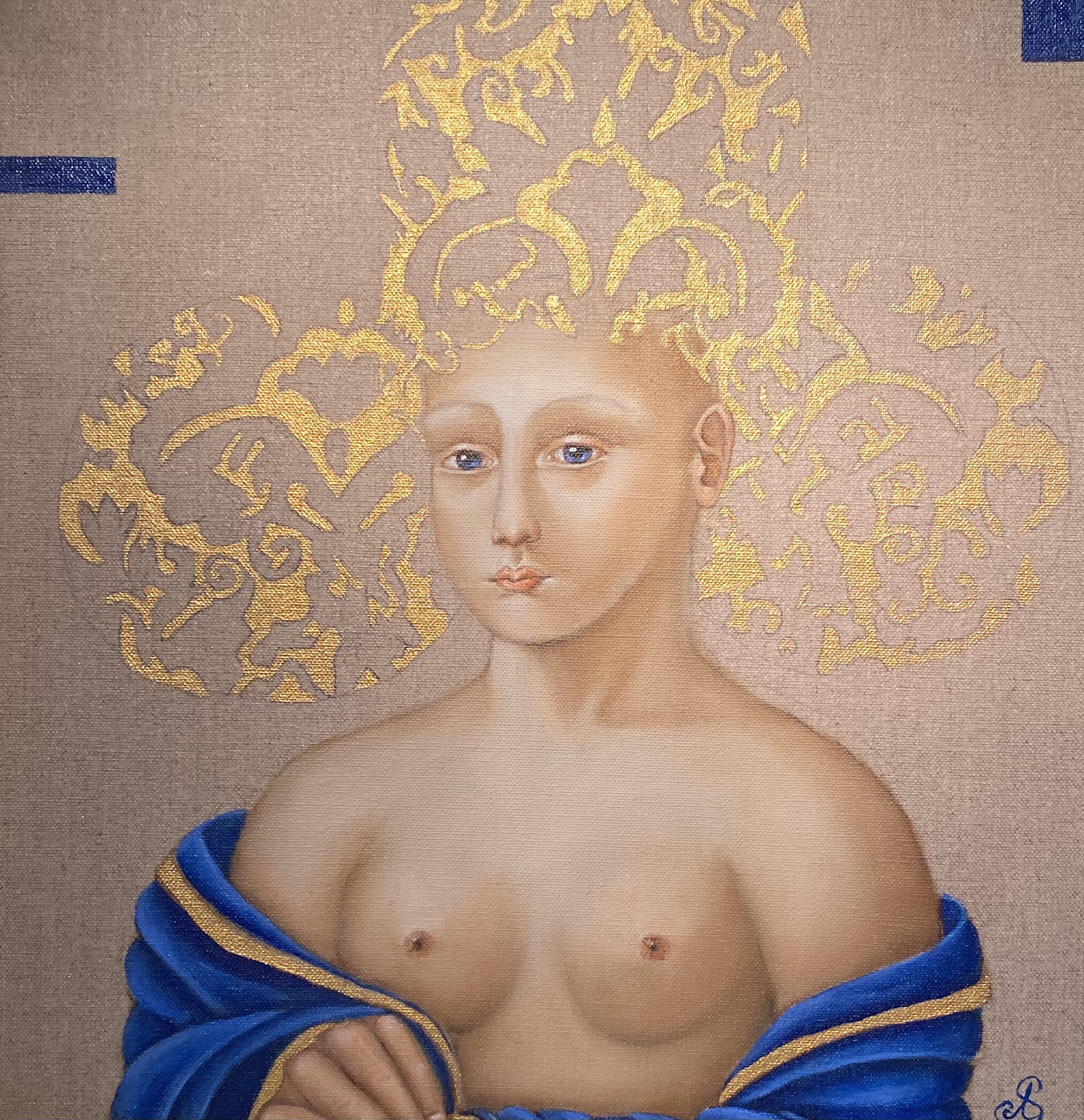Blauw Goud Blue Oil Surrealistisch Painting Old On Linnen Renaissance Masters Technique Goldpaint Sureeal