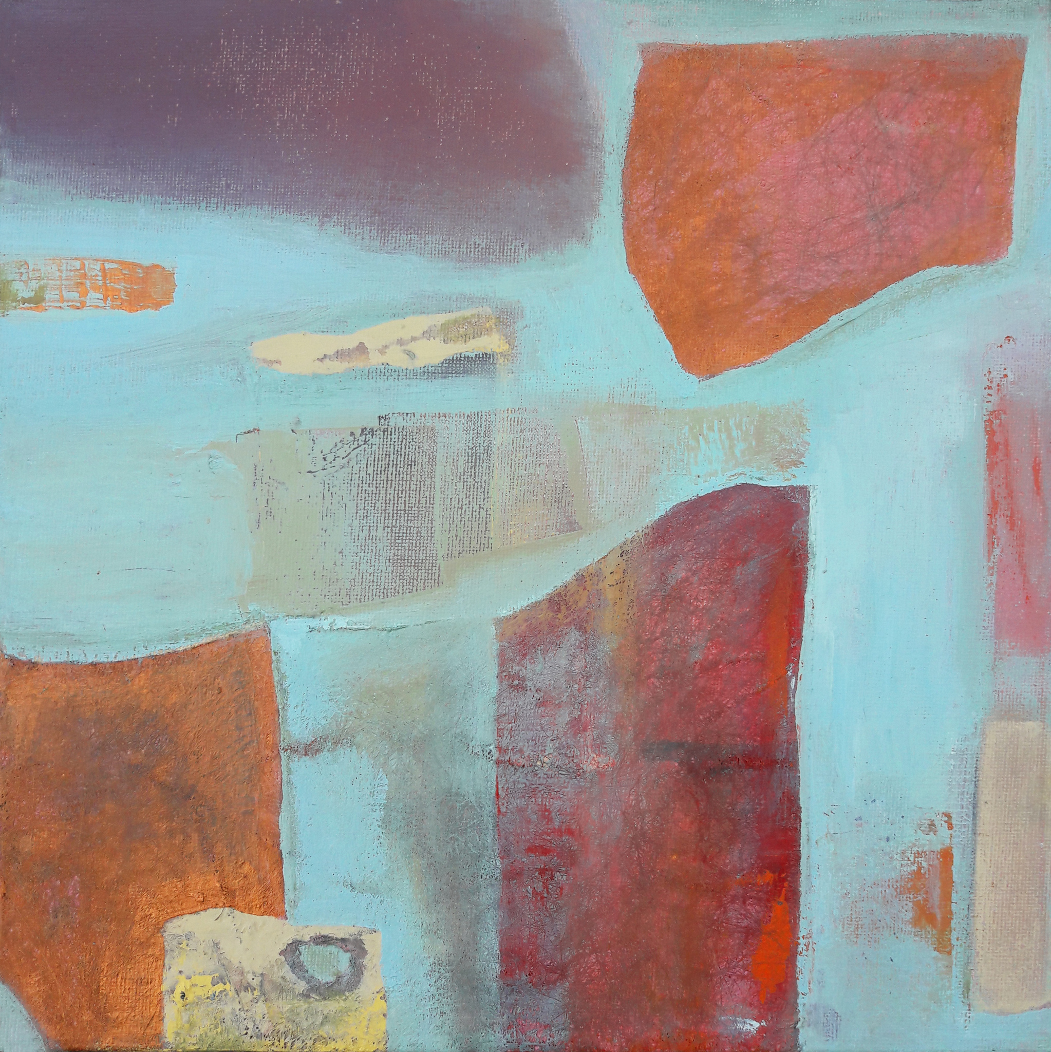 Dit kleine schilderij, gemaakt in acrylverf en gemengde techniek, heeft een heel rustige, kalme uitstraling. De koele turquoise-achtige tinten hebben iets verfrissends, terwijl de oranjebruine tonen meer aards zijn.Het wekt de associatie met een zonnige vakantie op een tropisch eiland. Dankzij het kleine formaat is dit werkje geschikt voor kleinere ruimtes, zoals een nisje, een plank of een smalle nis.