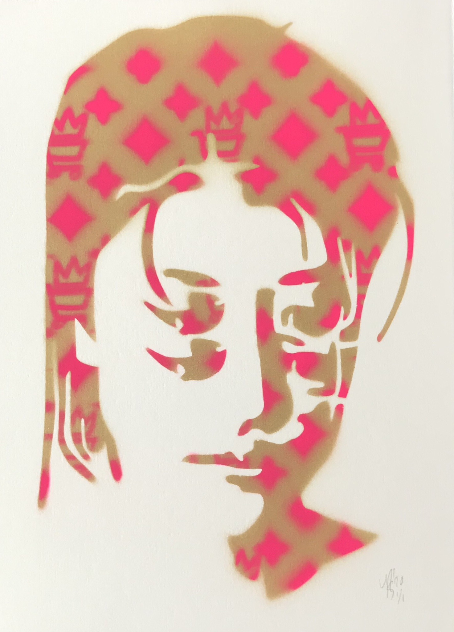 Girl with four eyes, gold Kunstenaar/artist: REX (Jurriaan Rexwinkel) Gesigneerd/signed: hand paraaf/Initials Jaar/year: 2020 Papier/paper: Incisioni 300gr Techniek/technique: Spuitbus op papier/Spray can on paper. Genummerd/number: 1 Formaat blad/Size of paper: 22 x 30 cm Format image: 22 x 30 cm Conditie/Condition: Nieuw/new