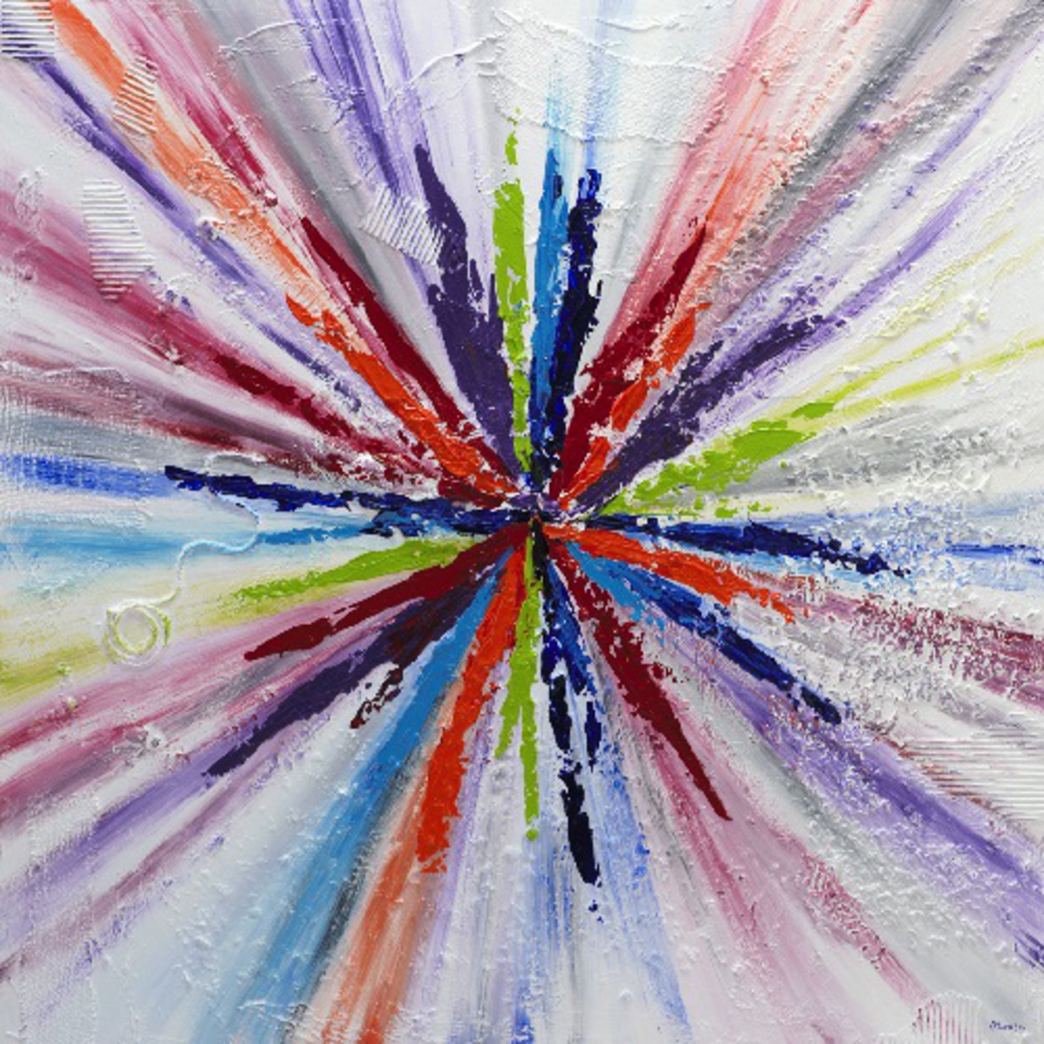 Abstract schilderij: Colorful. 100 x 100 cm. Extra dik canvas. Allerlei materiaal verwerkt in acrylverf.