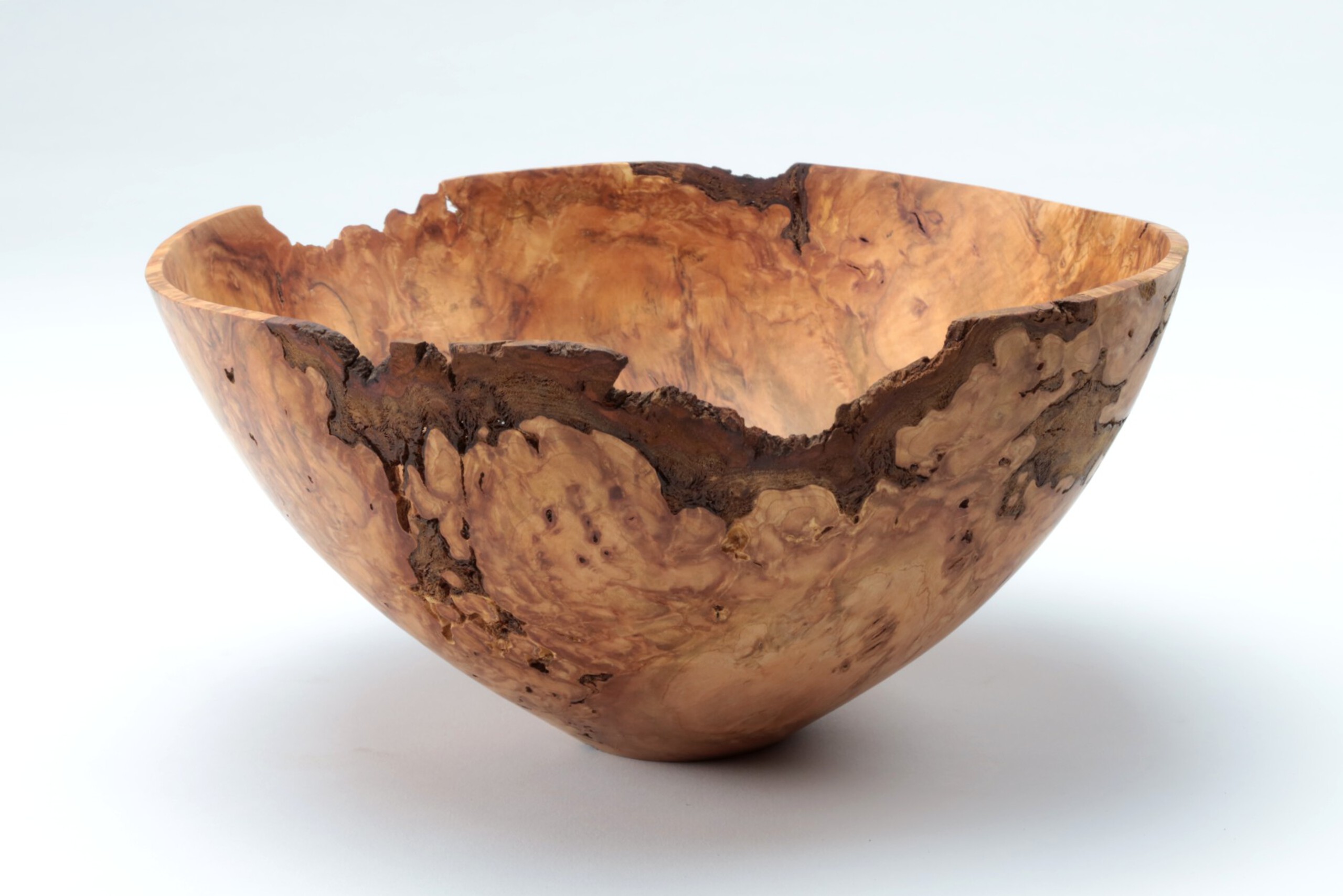 Delicate kom vorm gedraaid uit de woekering van een kersenboom. Matte finish met Danish oil. Afm: diameter x hoogte 29cm. x14 cm. Nr. 1761.