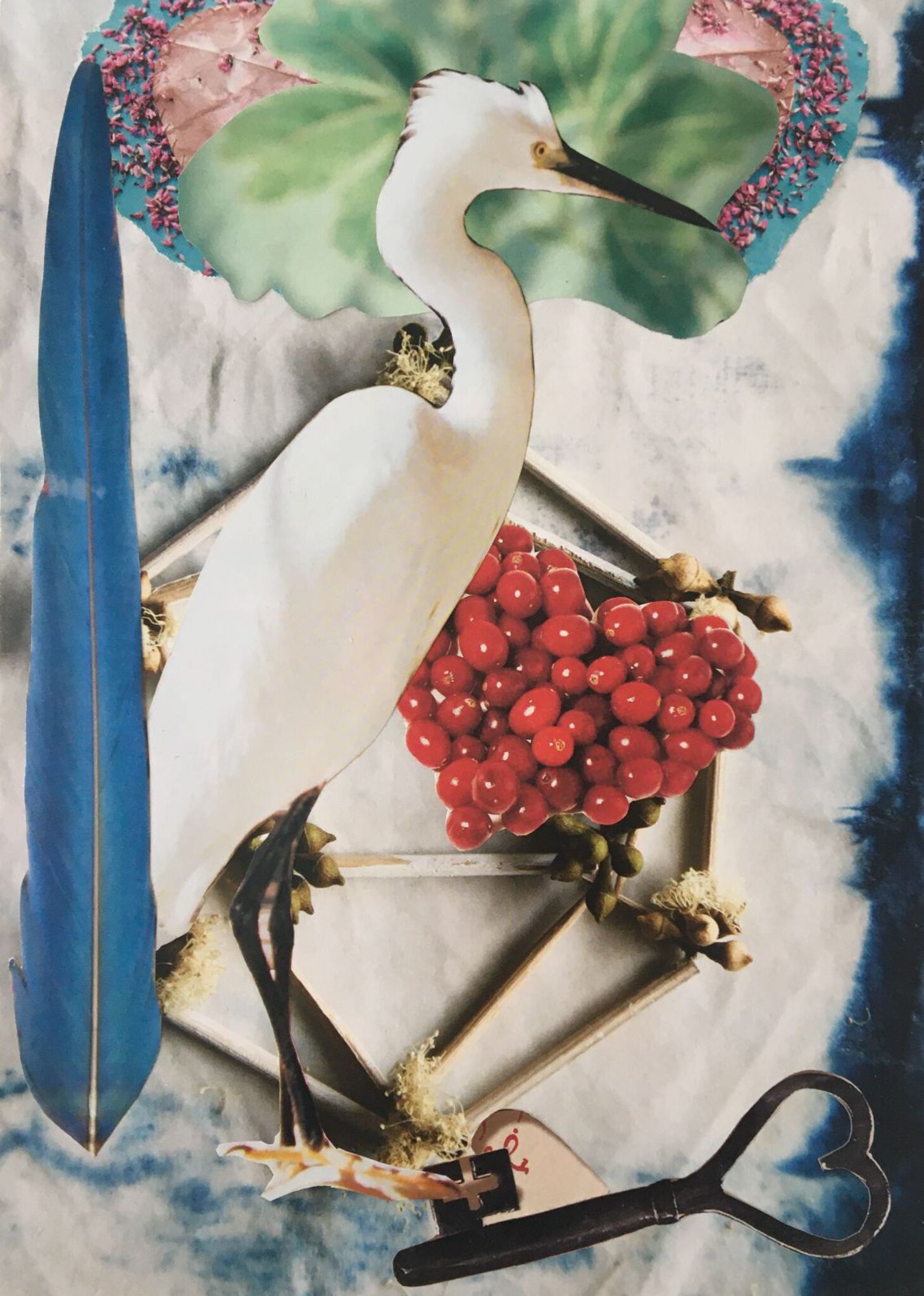 Wit Surreeel Blauw Rose Spiritueel Groen Kleurig Papier Bloem Flow Verhalend Blad Collage Papierkunst Spiegel Positief Veer Intuïtief Kunstenaar Sleutel Bewegend Lijm Kraanvogel Boodschap Schaar