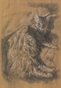 Gemengde Techniek Klassieke Kat Tekening Poes Lola