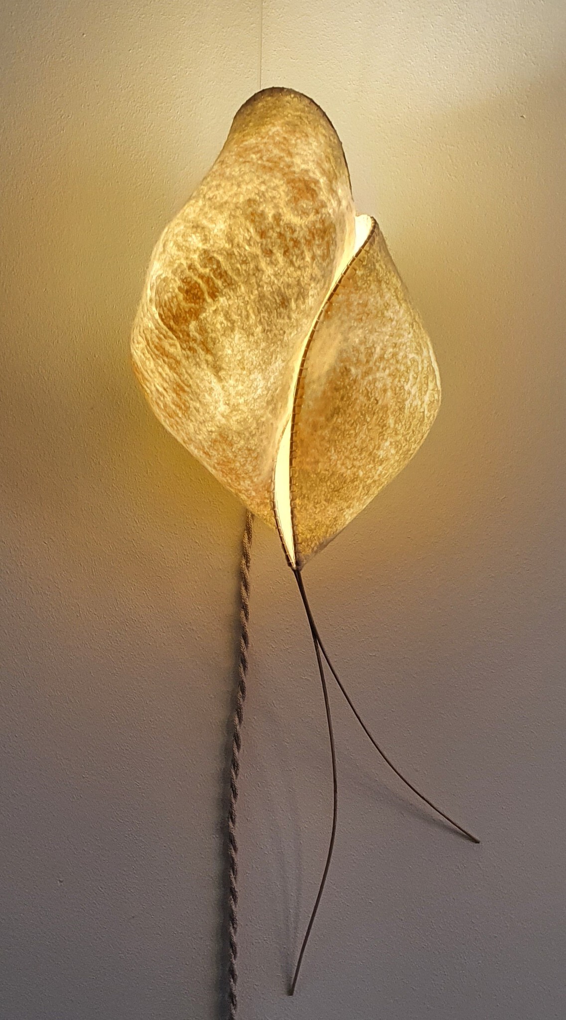 door licht achter het vilt te plaatsen worden de structuren van het vilt zichtbaar.