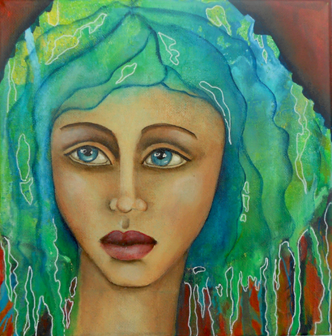 Schilderij Meisje Acryl Vogel Spiritueel Vrouw Klein Gezicht Canvas Figuur Surrealistisch Kunst Face Surreëel Geschenk Intuitief Kleurrijke Droefheid Inspirerend Handmade Sorrow Kunstcadeau Presents Cadeautjes Denthe