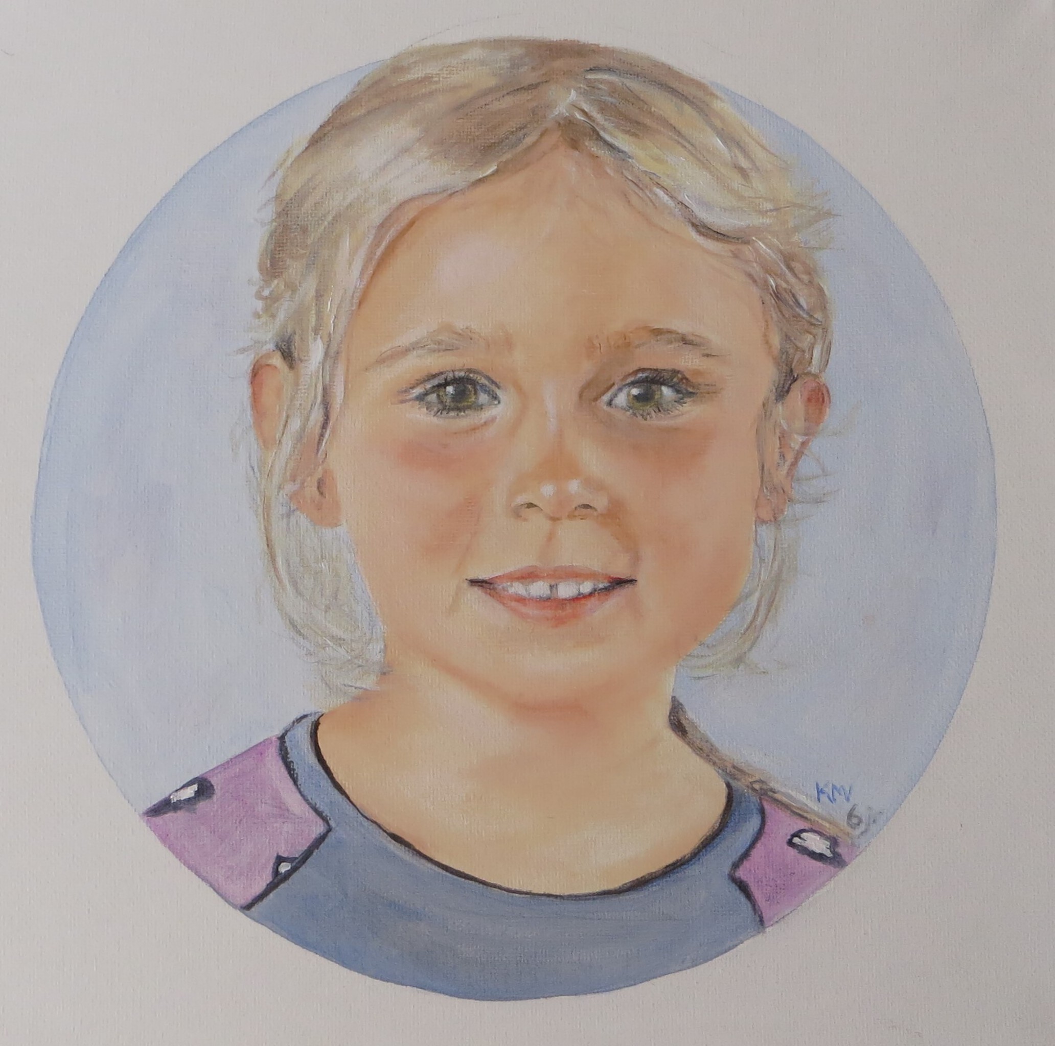 Naomi is mijn jongste kleinkind. Diverse keren heb ik haar geportretteerd. Kleine kinderen veranderen zo snel.................inmiddels is ze 8 jaar (maar ik schilderde haar toen zij 6 jaar was)